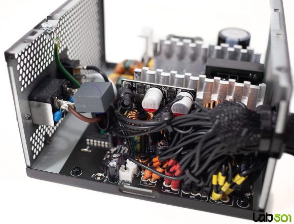 Desi face parte din segmentul entry-level, XPG Pylon 750 Bronze beneficiaza de un design intern bine pus la punct, datorat experientei OEM-ului Channel Well Technology (CWT) care produce aceasta serie. Platforma utilizata este analogica, de generatie anterioara, bazata pe o topologie double-forward cu PFC activ si convertoare DC-DC pentru rail-urile minore din secundar – o alegere tipica pentru sursele Bronze, axata mai mult pe obtinerea unui cost redus de productie, decat pe performanta maxima.