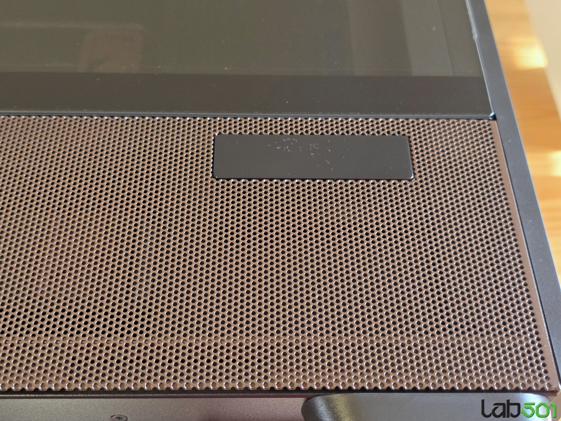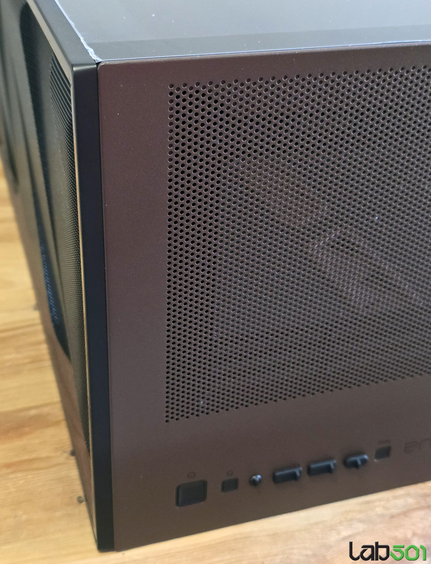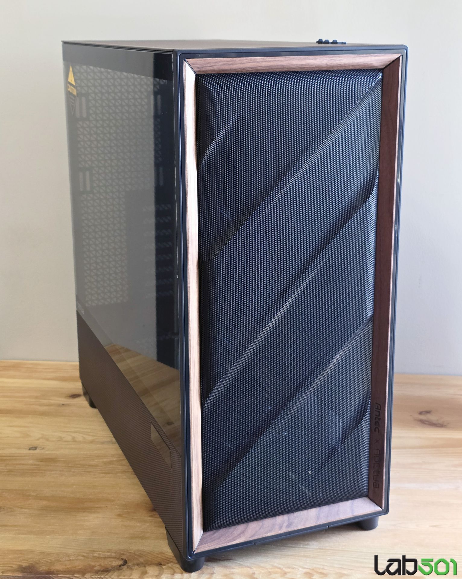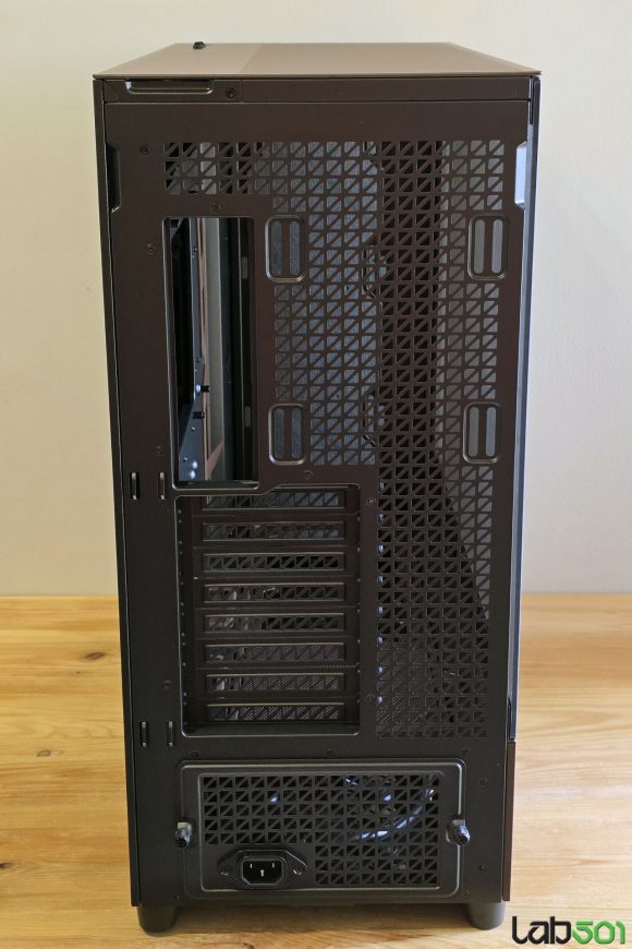 Laterala stanga este construita din sticla securizata, in timp ce in partea dreapta gasim un panou din otel. Ambele laterale sunt prevazute cu o zona perforata care se intinde pe toata lungimea carcasei, in dreptul compartimentului sursei si unitatilor de stocare. Latura superioara este construita in cea mai mare parte din mesh, putand fi detasata cu usurinta gratie unei decupaturi atent pozitionate.