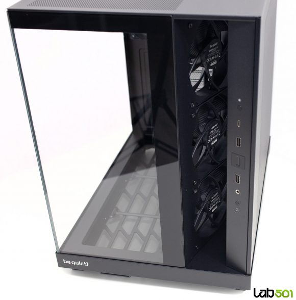 Prin intermediul lui Light Base 500, be quiet! ofera un mid-tower ce imbina intr-un mod functional atat elemente de design, cat si de functionalitate. Producatorul reuseste sa pastreze design-ul „fish tank”, adresand totodata in mod concret racirea placii video prin intermediul celor trei ventilatoare dispuse lateral pe masca frontala. Acestea, impreuna cu componentele din interior, sunt protejate impotriva admisiei impuritatilor prin aplicarea unui filtru de praf magnetic, accesibil din partea frontala.