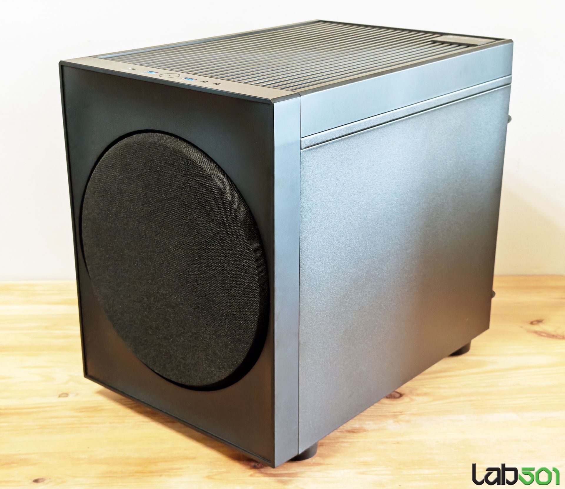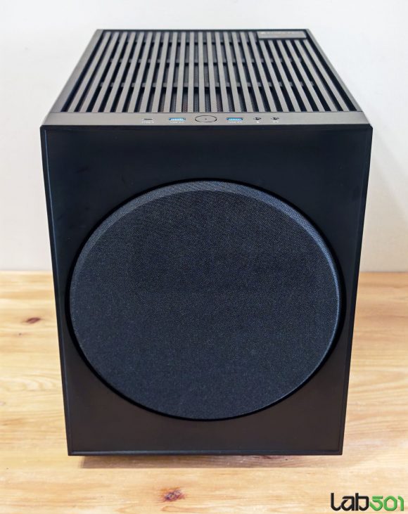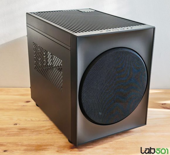 Primul lucru care ne sare in ochi este, evident, aspectul Chieftec The Cube putand fi confundata cu usurinta cu un subwoofer. Acest lucru implica doua avantaje majore – in primul rand, se integreaza de minune in sufragerie, iar in al doilea rand, in spatele discului de plasa fina se ascunde un ventilator de 200mm. Dimensiunile sunt similare cu ceea ce vedeam acum 6 ani, The Cube masurand 385 x 265 x 355 mm, fata de 390 x 265 x 325 mm in cazul modelului original. Asta inseamna ca avem de-a face cu o carcasa putin mai scurta, dar semnificativ mai inalta.