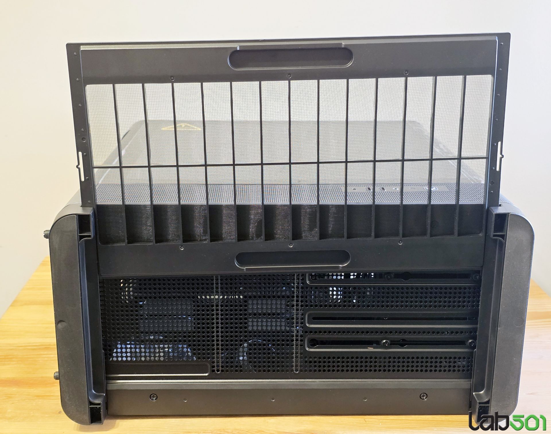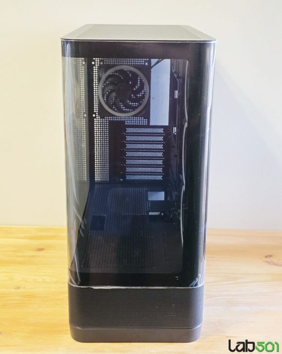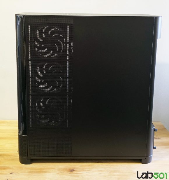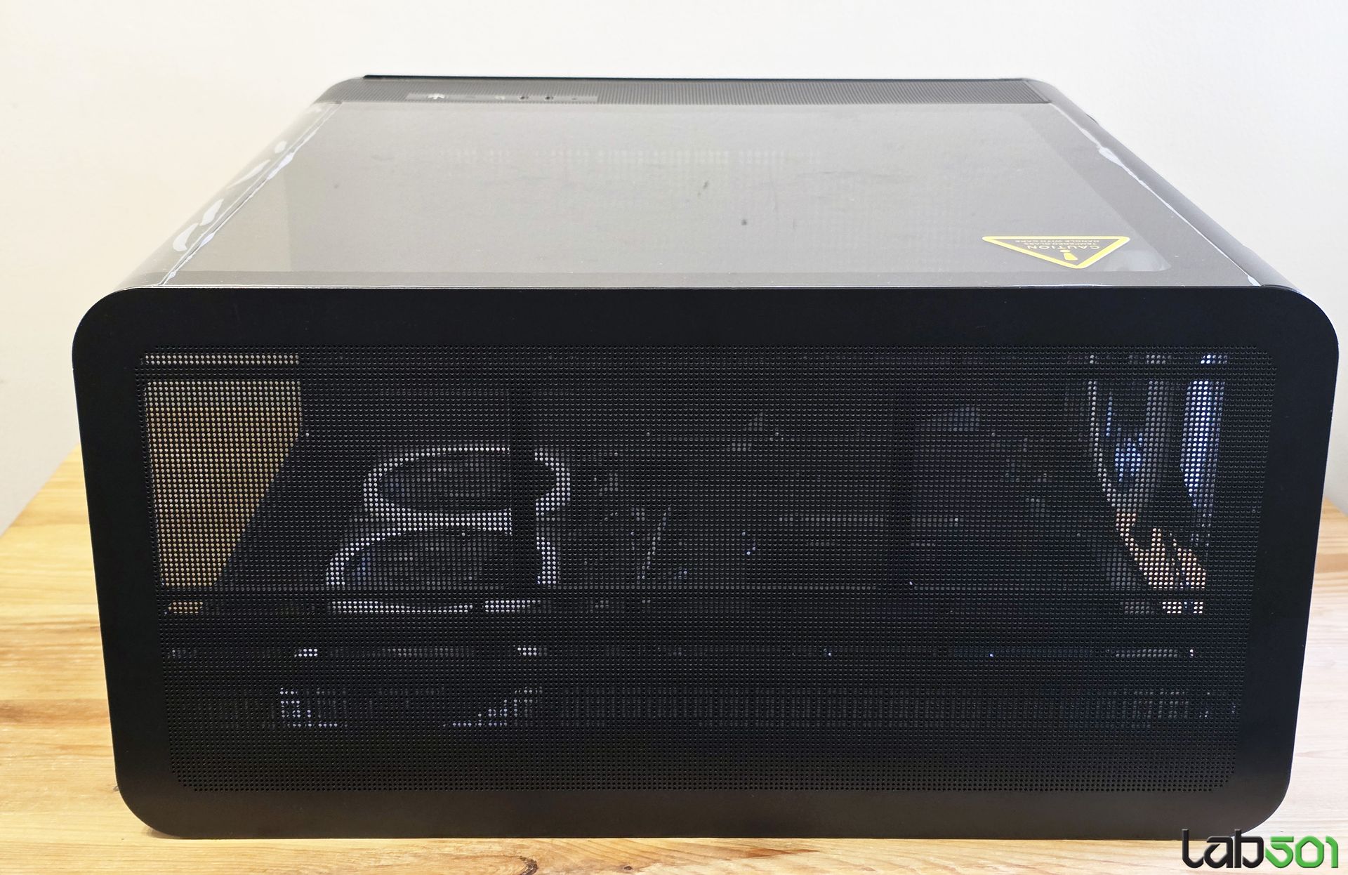 Laterala stanga si latura frontala sunt construite din sticla securizata, in timp ce laterala dreapta este construita din otel, cu o zona perforata pozitionata inspre latura din fata a carcasei. De altfel, chiar si pe latura stanga, respectiv pe latura frontala, gasim o astfel de zona, pozitionata de-a lungul laturii inferioare, sub geam.