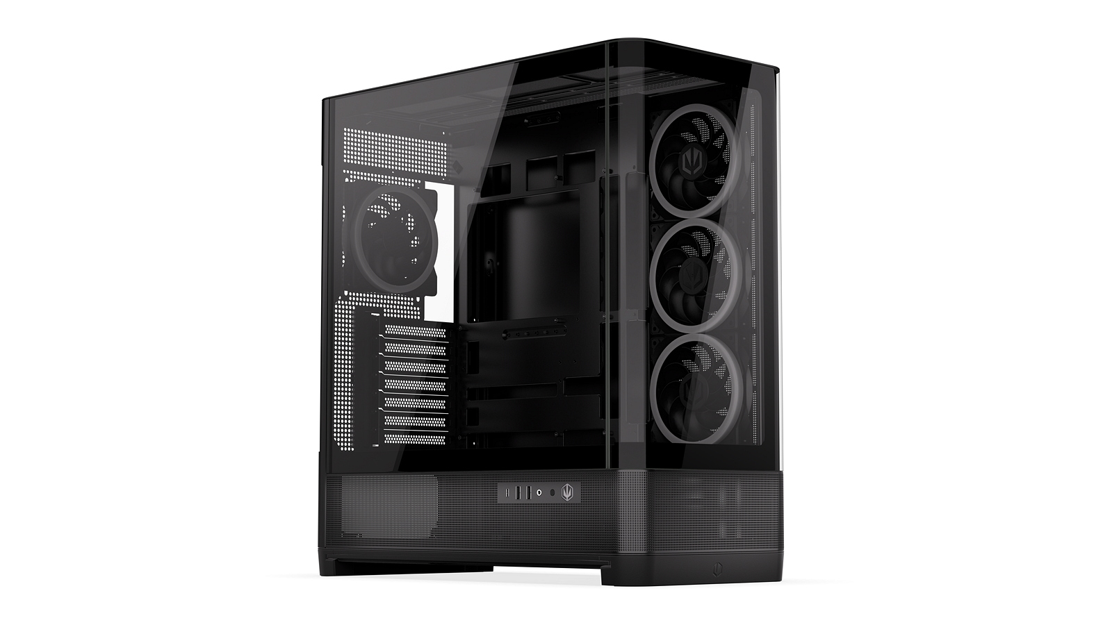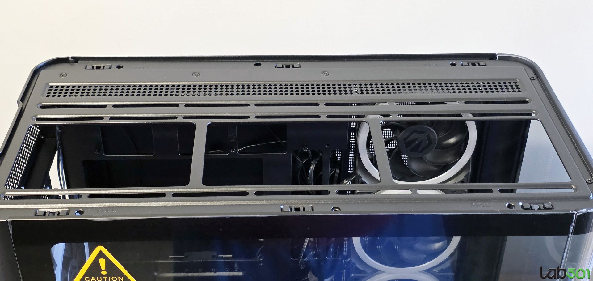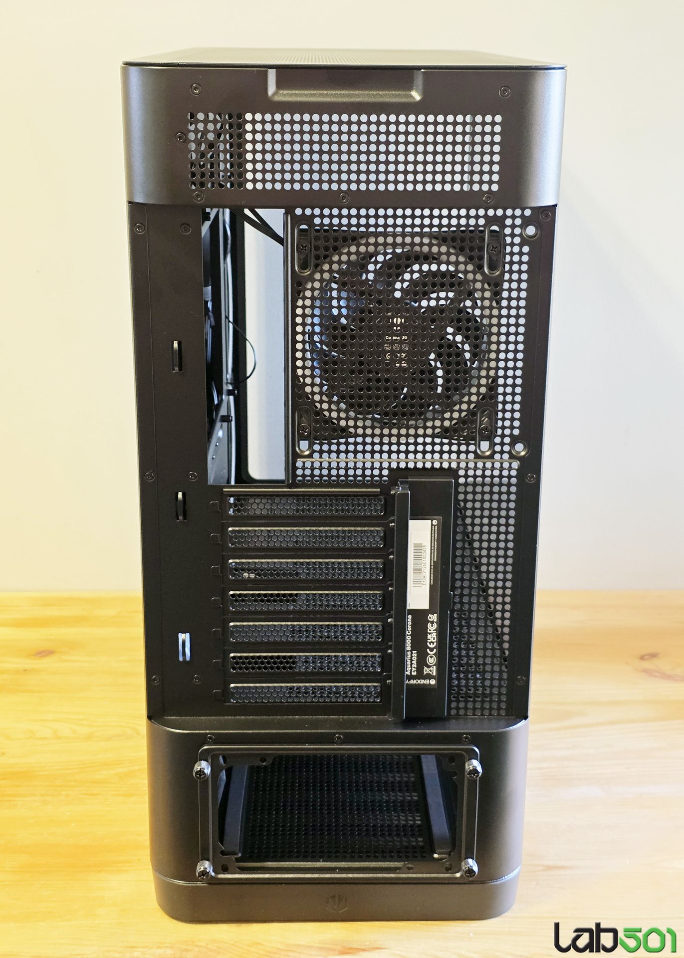 Laterala stanga si latura frontala sunt construite din sticla securizata, in timp ce laterala dreapta este construita din otel, cu o zona perforata pozitionata inspre latura din fata a carcasei. De altfel, chiar si pe latura stanga, respectiv pe latura frontala, gasim o astfel de zona, pozitionata de-a lungul laturii inferioare, sub geam.