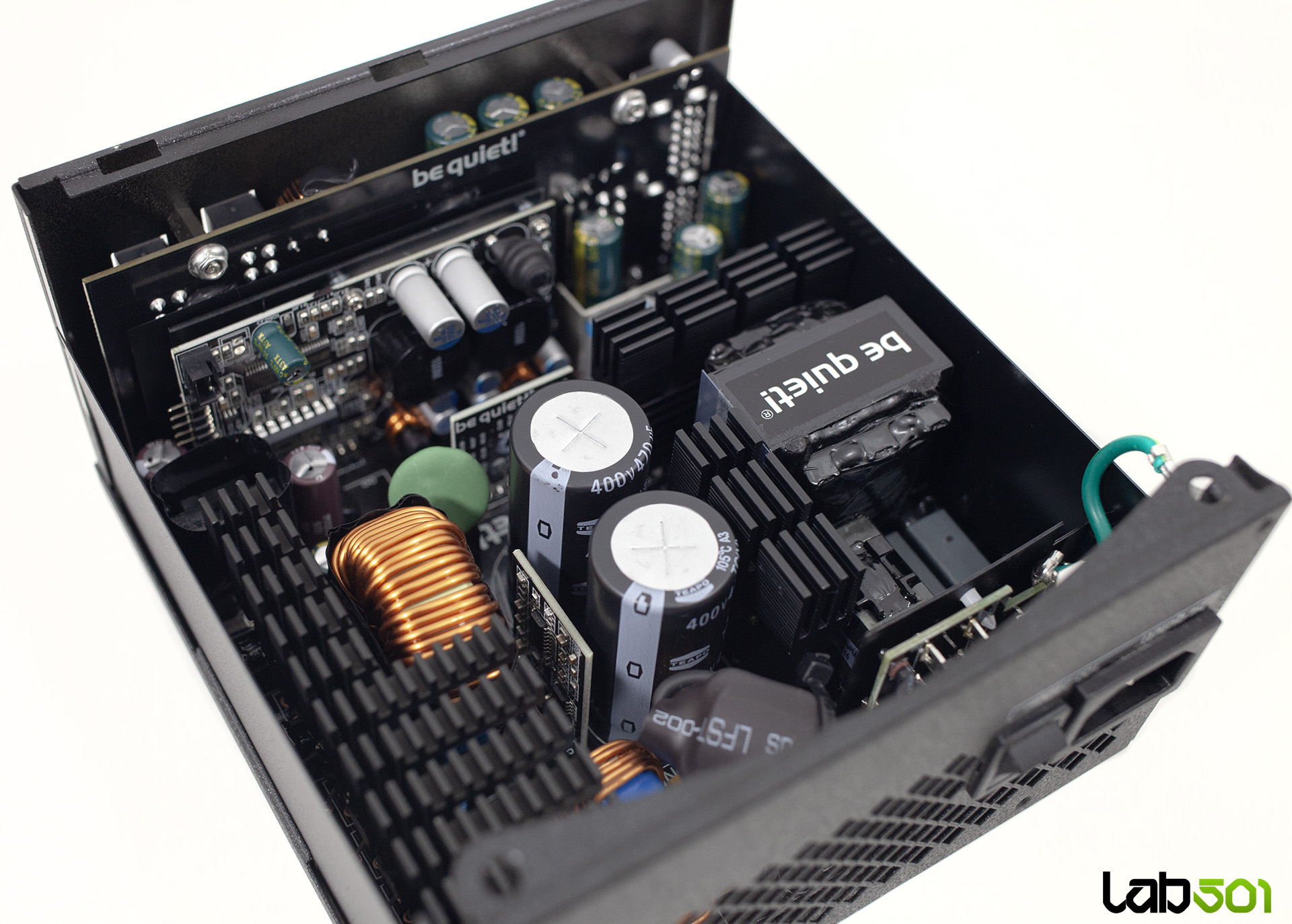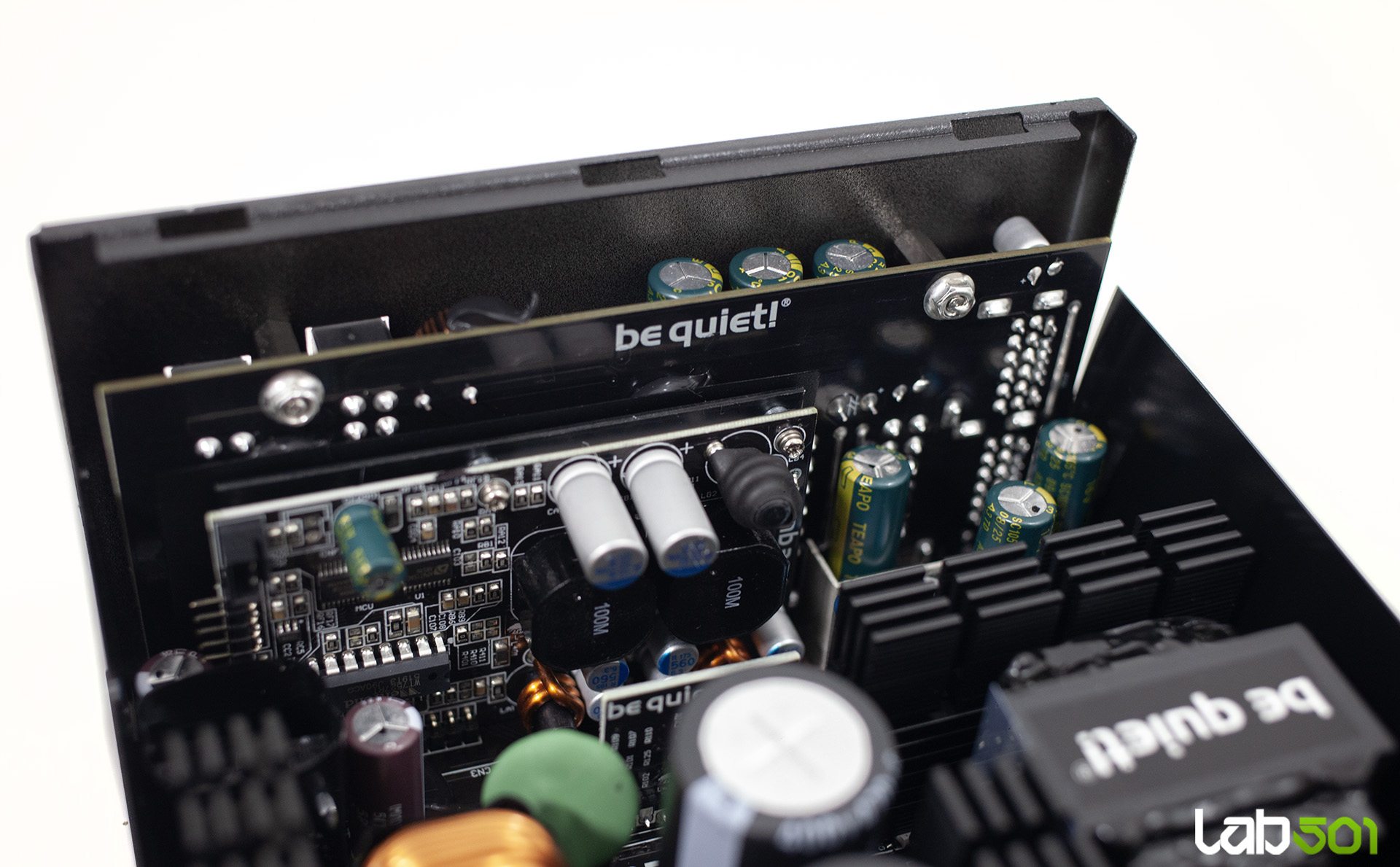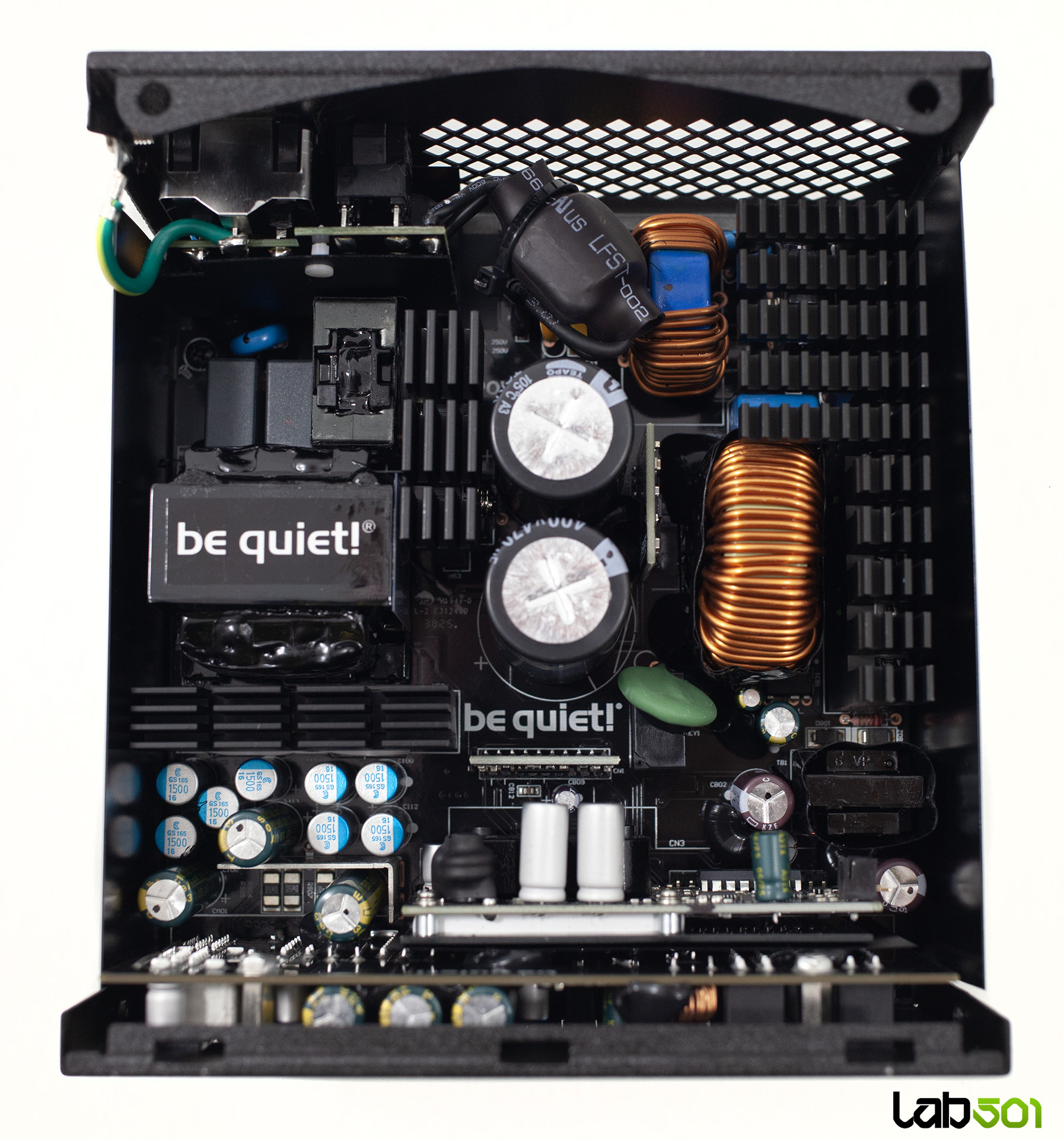 Calitatea constructiei interne este la nivelul asteptarilor pentru o platforma dezvoltata de HEC si comercializata sub eticheta be quiet!: lipituri curate, trasee bine optimizate si utilizarea adezivului pentru fixarea componentelor critice, in vederea reducerii vibratiilor si a zgomotelor parazite.