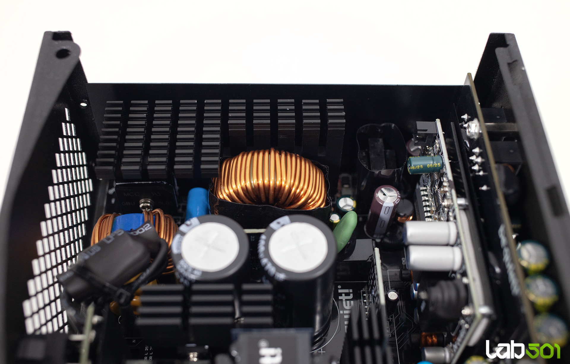 Platforma utilizata de Power Zone 2 1200W este dezvoltata in colaborare cu HEC si se bazeaza pe o topologie half-bridge LLC in primar, cu redresare sincron in secundar si convertoare DC-DC dedicate rail-urilor de +5V si +3.3V. Cele doua VRM-uri sunt implementate pe un PCB separat, montat vertical pe placa principala, paralel cu PCB-ul conectorilor modulari – o solutie compacta, care contribuie atat la optimizarea spatiului, cat si la mentinerea stabilitatii tensiunilor minore.