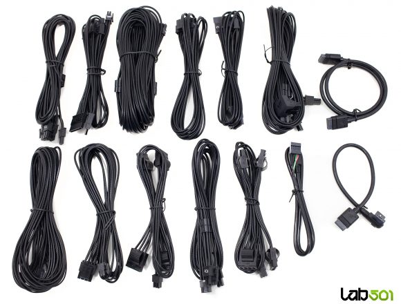 Corsair HX1200i SHIFT este complet modulara, iar repartitia si lungimea cablurilor pot fi consultate in tabelele de mai jos: