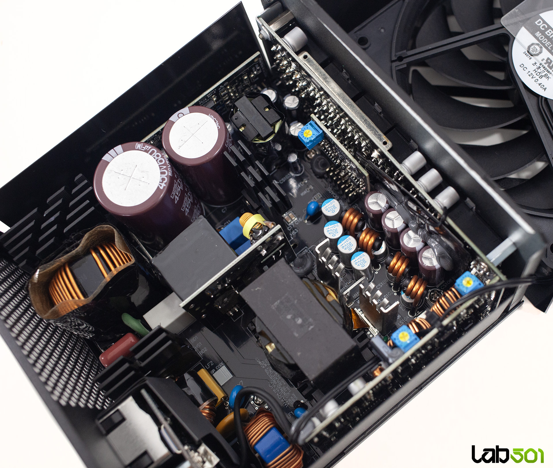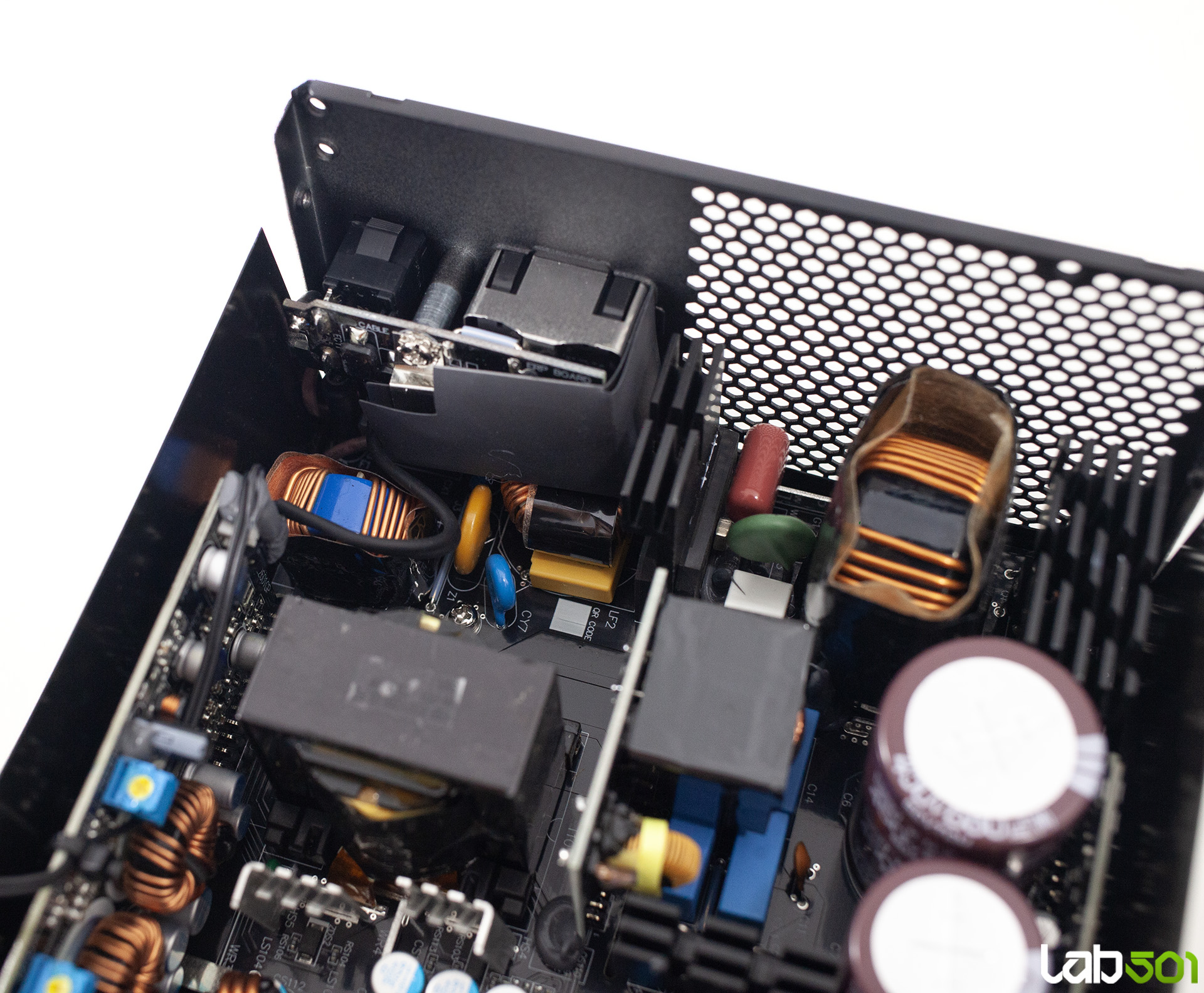 Toti condensatorii electrolitici si polimerici sunt de provenienta japoneza si certificati pentru o temperatura maxima de functionare de 105°C. In primar sunt utilizati doi condensatori Nippon Chemi-Con – din seriile KMZ (680µF / 450V) si KMR (330µF / 450V) – rezultand o capacitate totala de 1010µF, in timp ce in secundar regasim condensatori electrolitici Nippon Chemi-Con (seria KZE), Rubycon din seria ZLH, precum si condensatori polimerici Nippon Chemi-Con si Nichicon FPCAP. O selectie premium de componente.
