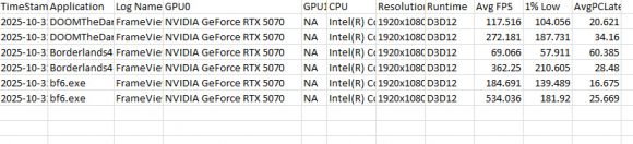 In restul titlurilor, activam DLSS 4 cu frame generation, iar rezultatele sunt chiar impresionante – 306 cadre pe secunda in Cyberpunk 2077, 272 in DOOM: The Dark Ages, 362 in Borderlands 4 si un impresionant 534 fps in Battlefield 6.