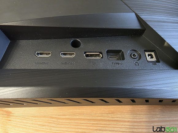 Conectica este pozitionata in dreapta monitorului, pe partea din spate, in timp ce butonul de control cu 5 axe este pozitionat tot pe spate, in partea stanga. MSI MAG 321CUPDF este dotat cu 2 conectori HDMI 2.1, 1 conector Display Port 1.4a (HBR3), un conector Type-C (DP alt, PD 15W), un conector Line Out pentru casti si un conector pentru alimentator.