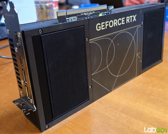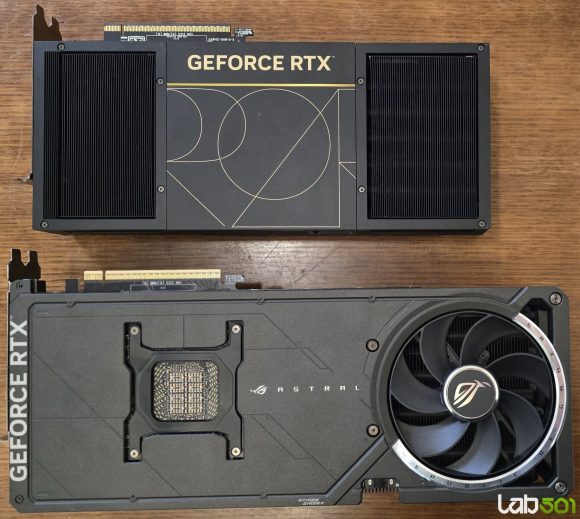 ASUS ProArt GeForce RTX 5090 32GB GDDR7 OC Edition este prima implementare RTX 5090 in format compact de 2.5 sloturi realizata de ASUS, gandita special pentru workstation-uri SFF, fara a face compromisuri majore in ceea ce priveste performanta. Bazata pe arhitectura NVIDIA Blackwell, cu suport pentru DLSS 4, aceasta placa grafica livreaza performanta de top intr-un format surprinzator de usor de integrat in carcase de dimensiuni reduse – dupa cum se poate observa si din imaginile comparative cu ROG Astral GeForce RTX 5090, al carei volum este aproape dublu.