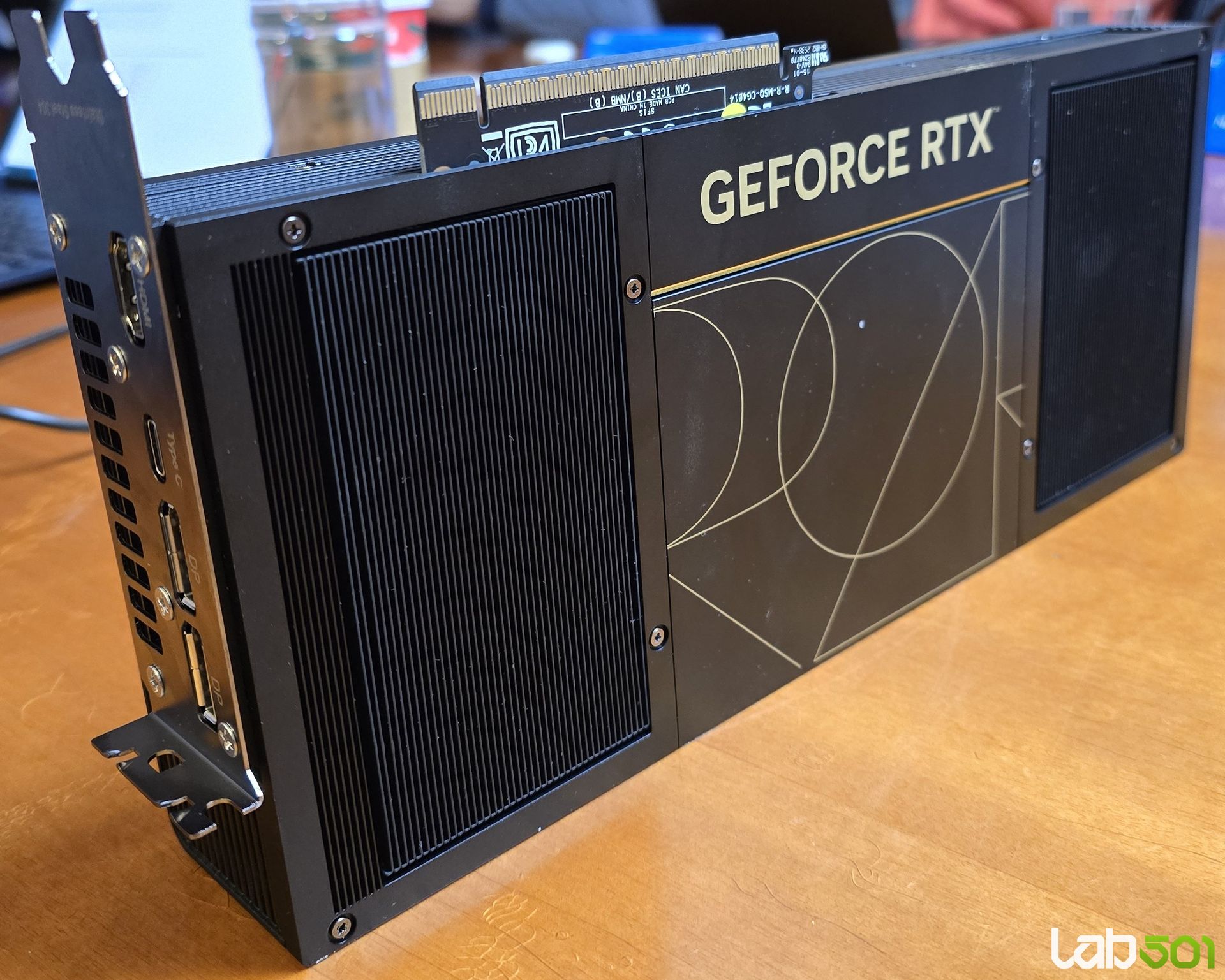 Un element distinctiv pentru zona de creatie este prezenta unui port USB Type-C integrat, care extinde semnificativ versatilitatea placii in medii profesionale – fie ca vorbim de conectarea directa a monitoarelor compatibile, echipamente VR sau alte periferice destinate creatorilor de continut. Din punct de vedere estetic, ASUS ProArt GeForce RTX 5090 32GB GDDR7 OC Edition adopta un design minimalist, cu insertii laminate cu textura de lemn si accente discrete specifice seriei ProArt, adresandu-se clar publicului din zona Pro, si nu utilizatorilor orientati spre un setup RGB-heavy.