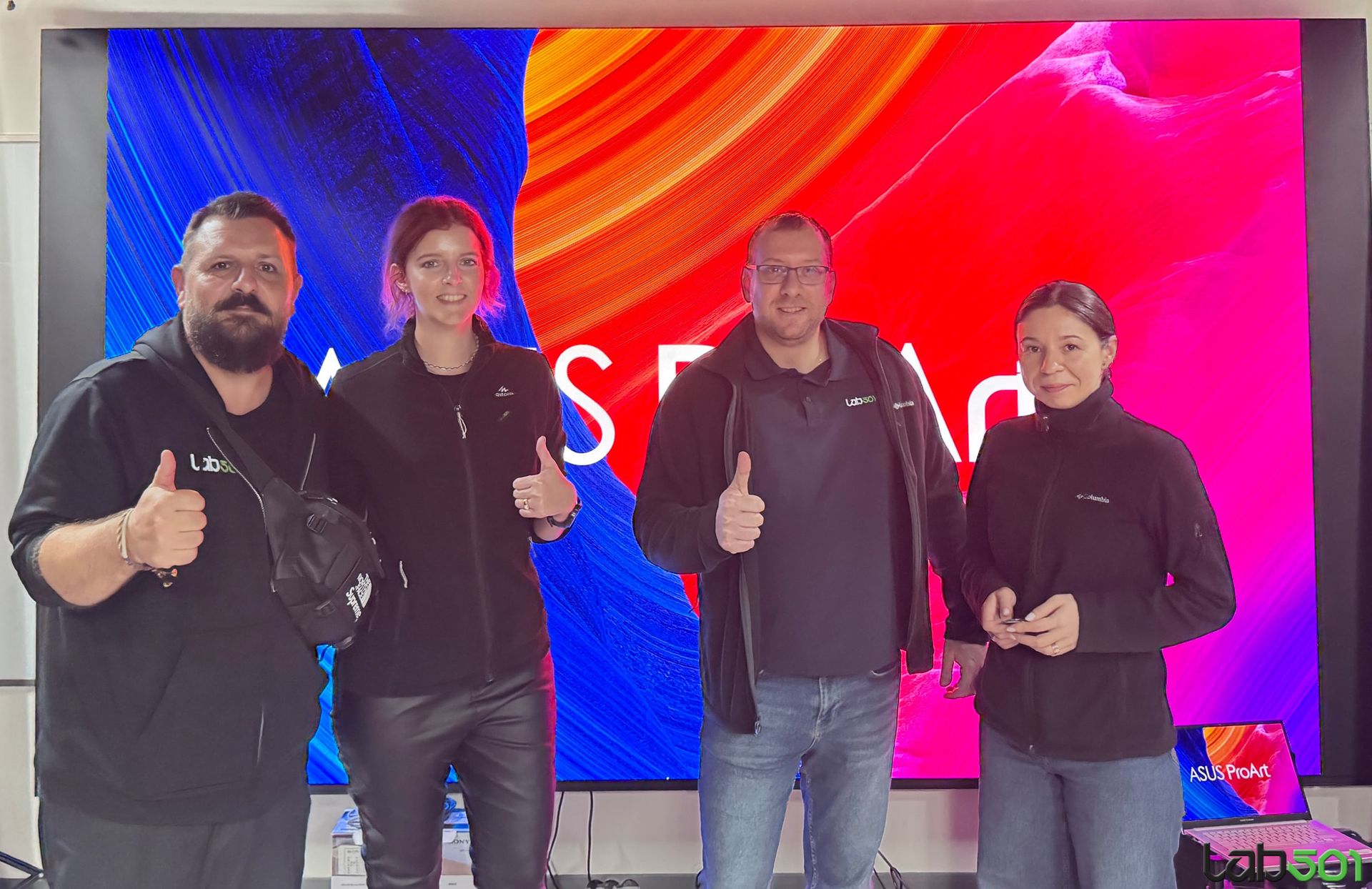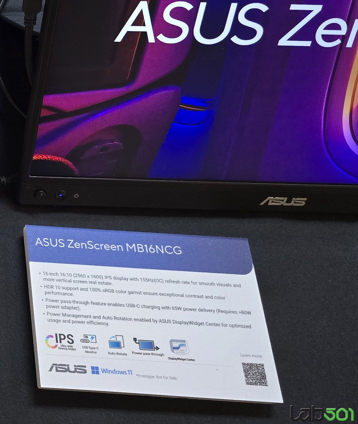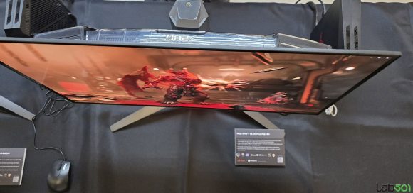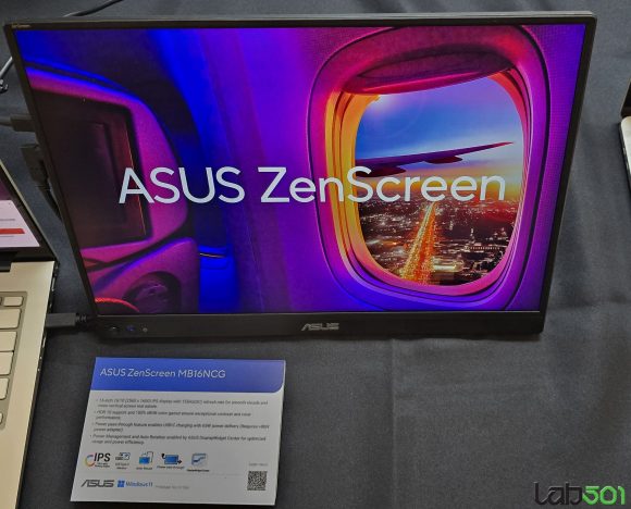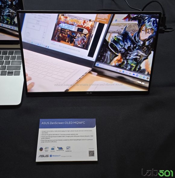 Am vazut si doua monitoare externe din gama de monitoare portabile ZenScreen cu aspect 16:10, mai precis ASUS ZenScreen OLED MQ16FC (16”, OLED, 95% DCI-P3) si ASUS ZenScreen MB16NCG (16”, IPS, 155Hz, Power Pass-through), insa adevarata vedeta si surpriza a prezentarii la capitolul display a reprezentat-o monstrul denumit ASUS ProArt Cinema PQ09.