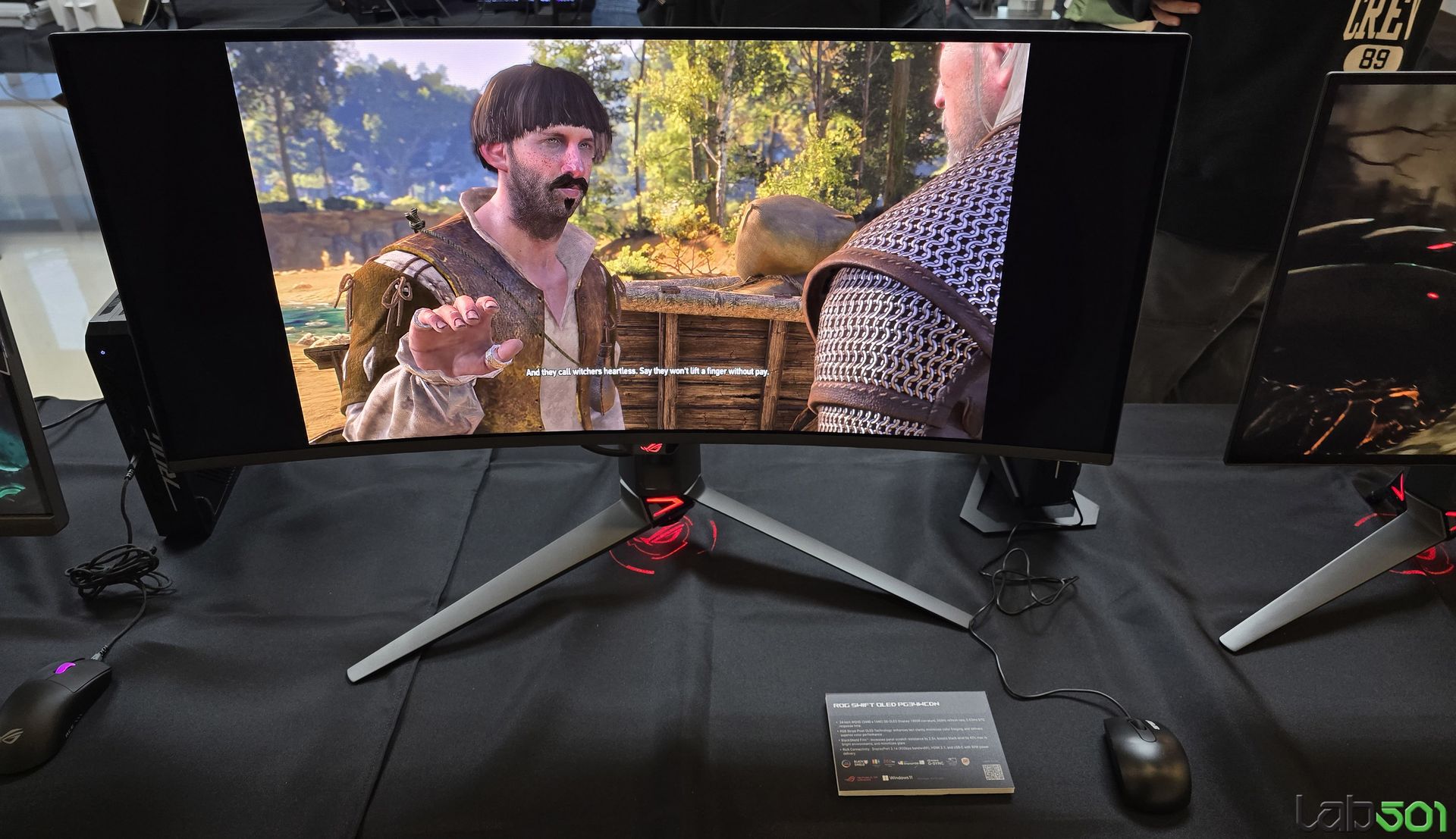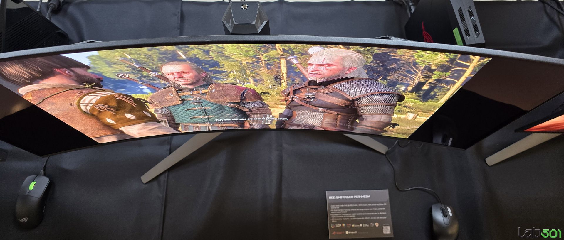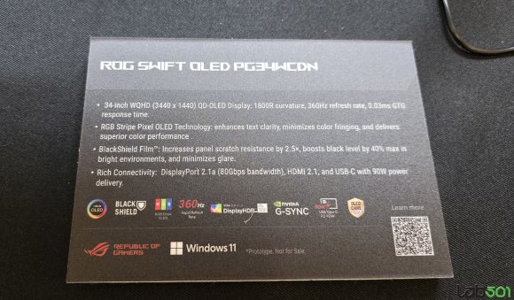 La randul sau, ASUS ROG Swift OLED PG34WCDN este un monitor cu un panou QD-OLED curbat (1800R), cu o diagonala de 34″, rezolutie WQHD si o rata de refresh de 360HZ. Folosind un panou cu layout RGB Stripe pentru sub-pixeli, monitorul ofera o reproducere extrem de clara a textului, fara aberatii cromatice, fiind dotat cu ceea ce ASUS denumesc BlackShield Film, care ofera o rezistenta cu pana la 2.5 mai ridicata impotriva zgarieturilor, un nivel de negru imbunatatit si reflexii reduse.