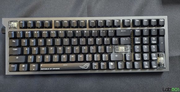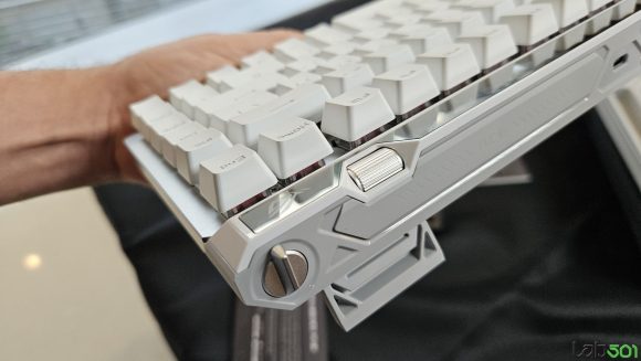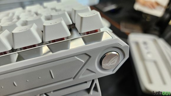 Cea de-a doua tastatura prezentata a fost ASUS ROG Strix Morph 96 Wireless, un model gasket-mount gandit pentru entuziasti, cu multiple straturi de antifonare, posibilitati avansate de personalizare, PCB hot-swap cu socket-uri south facing, rotita de control si tripla conectivitate (Bluetooth, 2.4GHz cu adaptor ROG SpeedNova wireless sau USB-C).