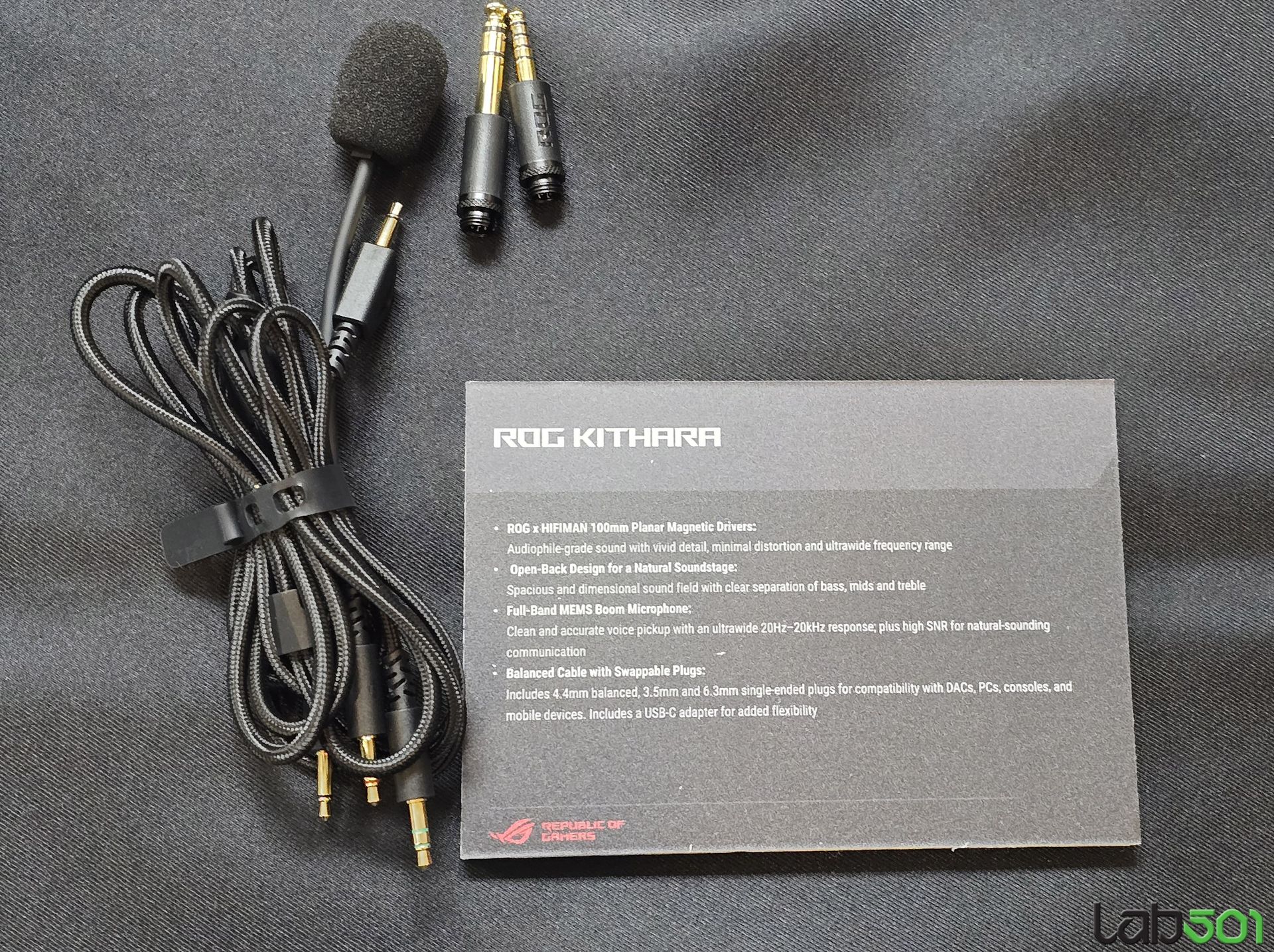 Discutam despre un headset open-back, cu un soundstage amplu si o separatie clara intre frecvente joase, medii si inalte, cu o calitate a constructiei iesita din comun, care ofera imbinarea perfecta intre confort si rezistenta. Mai mult decat atat, discutam despre un headset extrem de versatil la capitolul conectica, ASUS ROG Kithara fiind echipate cu un cablu modular, la care putem conecta mufe de 4.4mm, 3.5mm si 6.3mm, acestea fiind de altfel incluse in pachet.