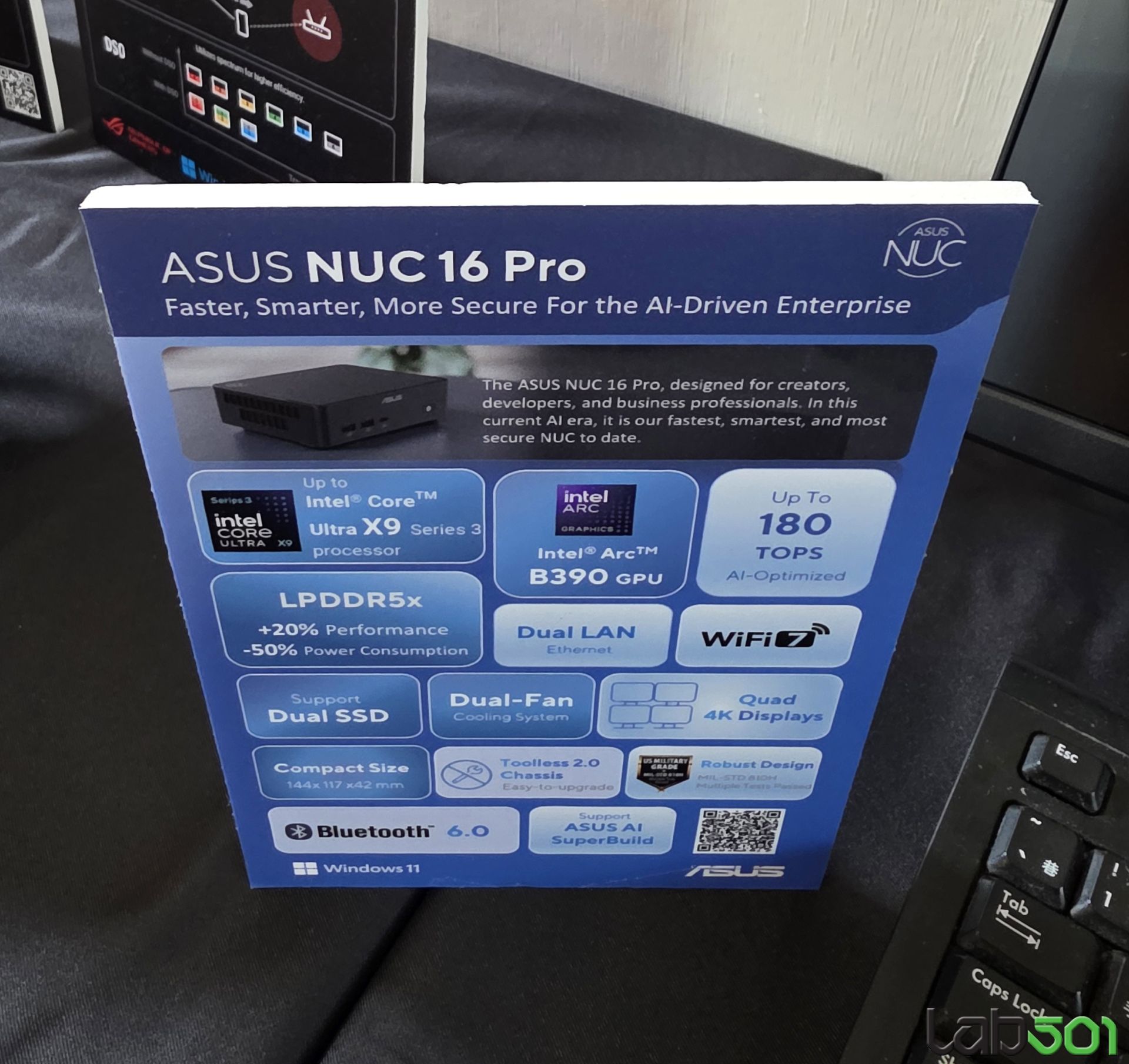 Desigur, nu toata lumea isi permite sau are nevoie de un supercomputer. Asta nu inseamna insa ca nu putem rula modele AI local, chiar si pe sisteme de dimensiuni extrem de reduse, cum ar fi cele din gama NUC. Astfel, ASUS NUC 16 PRO este gandit chiar pentru acest gen de aplicatii, fiind echipat cu un procesor de ultima generatie Intel Core Ultra X9, cu 12 nuclee Xe GPU si un NPU din cea de-a 5-a generatie. Micutul sistem este capabil sa ofere pana la 180 Platform TOPS pentru aplicatii AI si machine learning.