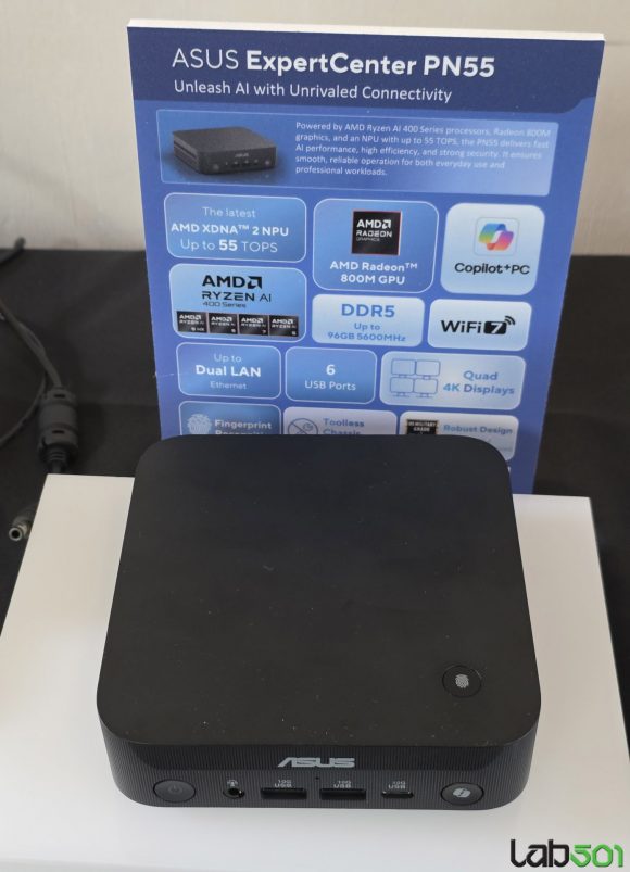 Daca avem nevoie de si mai multa putere, avem la indemana ASUS Ascent GX10, un supercomputer de mici dimensiuni, bazat pe un superchip NVIDIA GB10 Grace Blackwell si NVIDIA DGX Spark. De asemenea, ASUS ExpertCenter PN55 ofera o performanta ridicata, gratie procesorului din gama AMD Ryzen AI 400, cuplat cu o solutie grafica Radeon 800M, un NPU XDNA2 si pana la 96GB DDR5 5600.