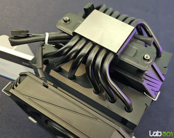 Pentru utilizatorii care urmaresc performanta termica ridicata, MP9 este un cooler dual tower, echipat cu sase heatpipe-uri de 6 mm si doua ventilatoare de 130 mm. Designul integral negru sugereaza o orientare clara catre sisteme high-end, unde racirea eficienta trebuie sa fie completata de o estetica sobra si bine integrata in configuratii moderne.
