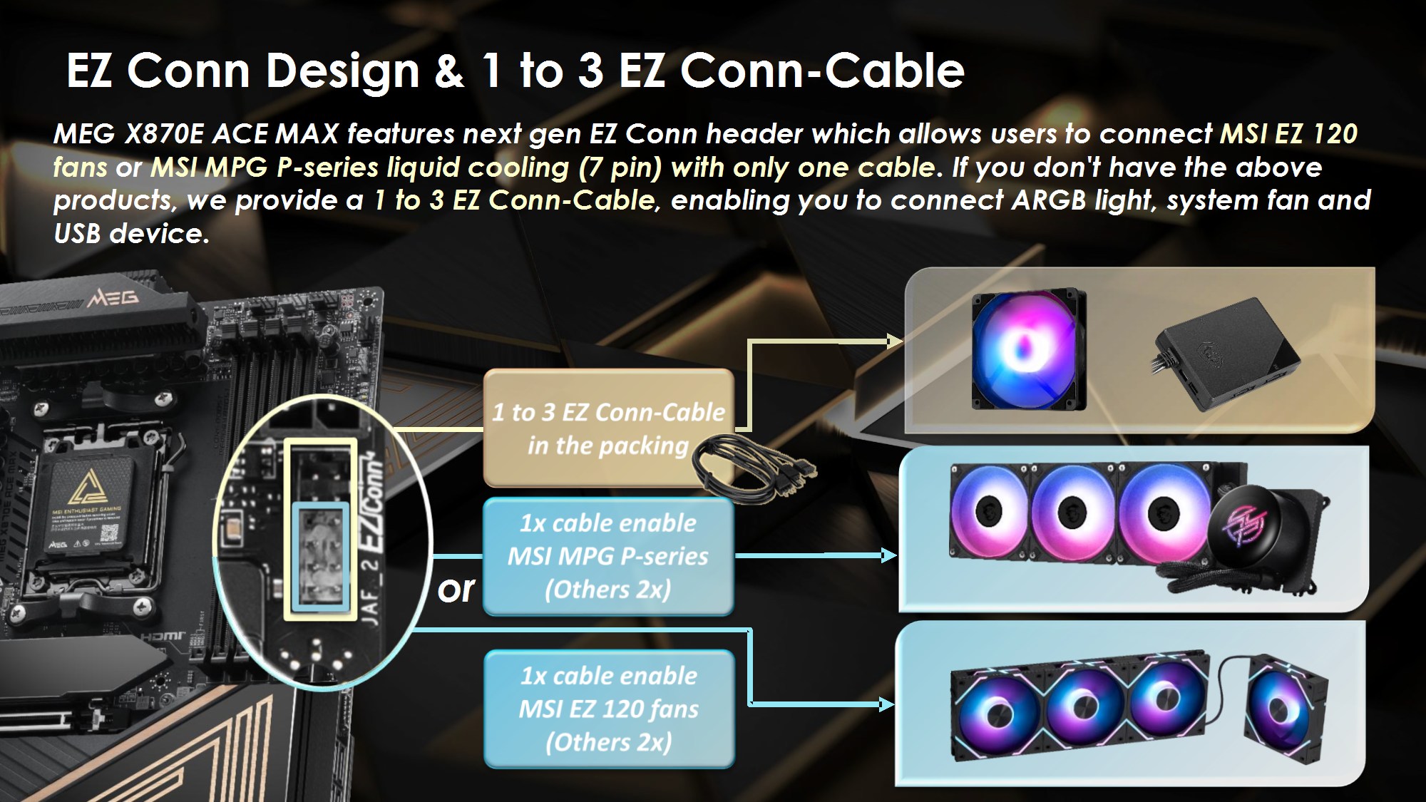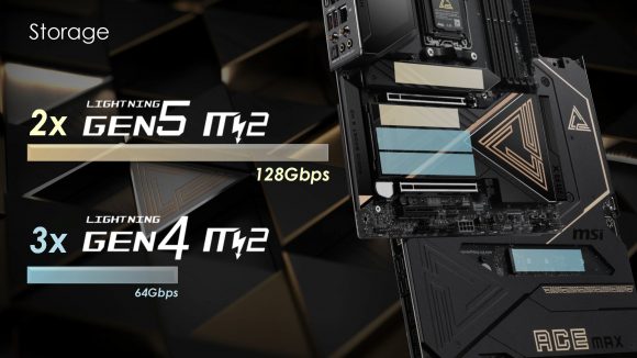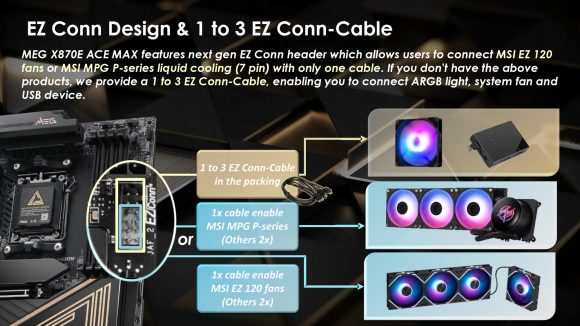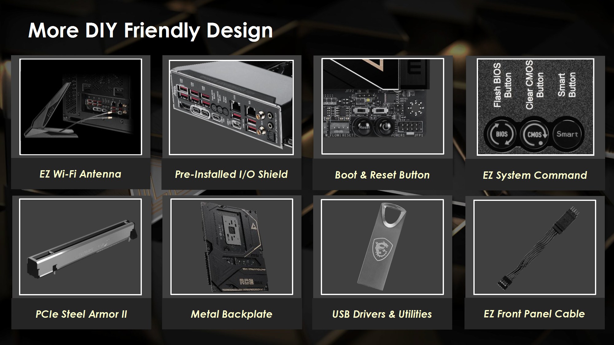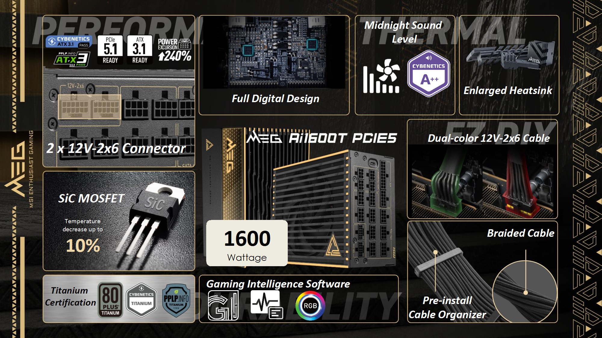 Nu in ultimul rand, avem de-a face cu un etaj de alimentare alcatuit din 18+2+1 faze de 110A, controlate de un PWM digital, conectivitate de ultima generatie (USB 4, WiFi 7, 10Gbe LAN), EZ-DIY design, BIOS Click X de 64MB si un conector PCI-E 8 pin dispus pe placa de baza, care acopera nevoia de putere in plus a celor mai recente placi grafice sau sisteme de racire.