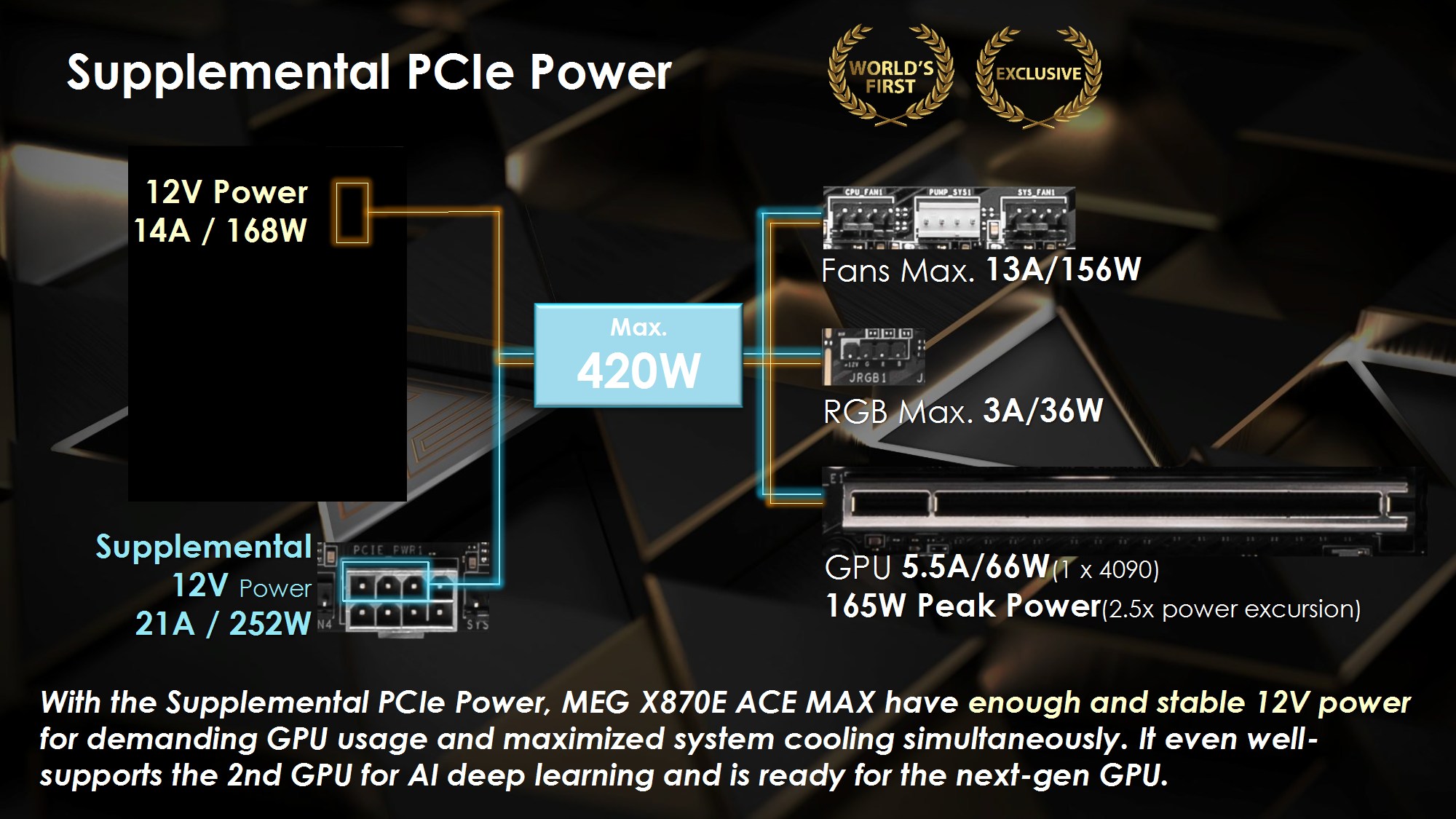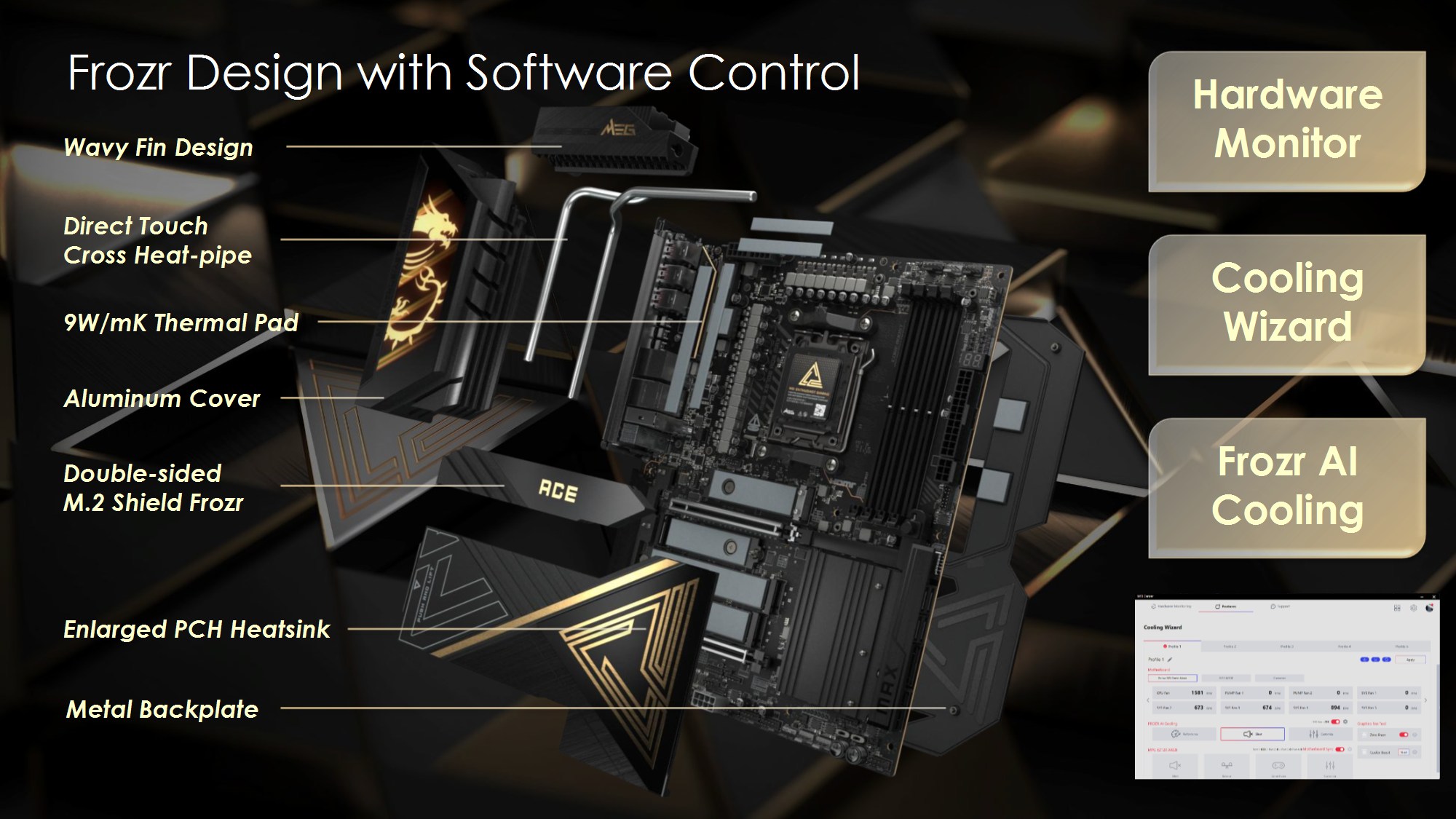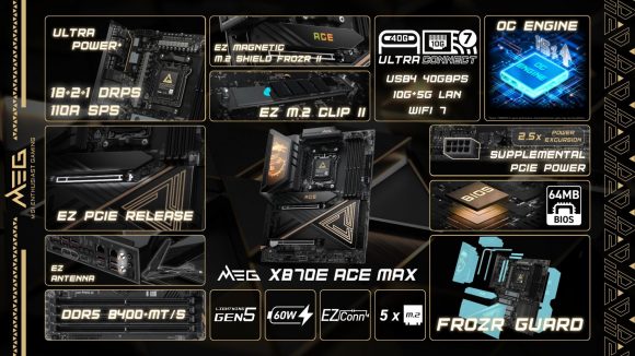 Acesta este si cazul sistemului MSI MEG – nu am avut la dispozitie un astfel de sistem ci am discutat mai degraba despre componentele care vor intra in alcatuirea lui. Astfel, baza unui astfel de sistem este placa de baza MSI MEG X870E Ace Max, una dintre placile de baza din seria Max lansate la inceputul lunii Decembrie.
