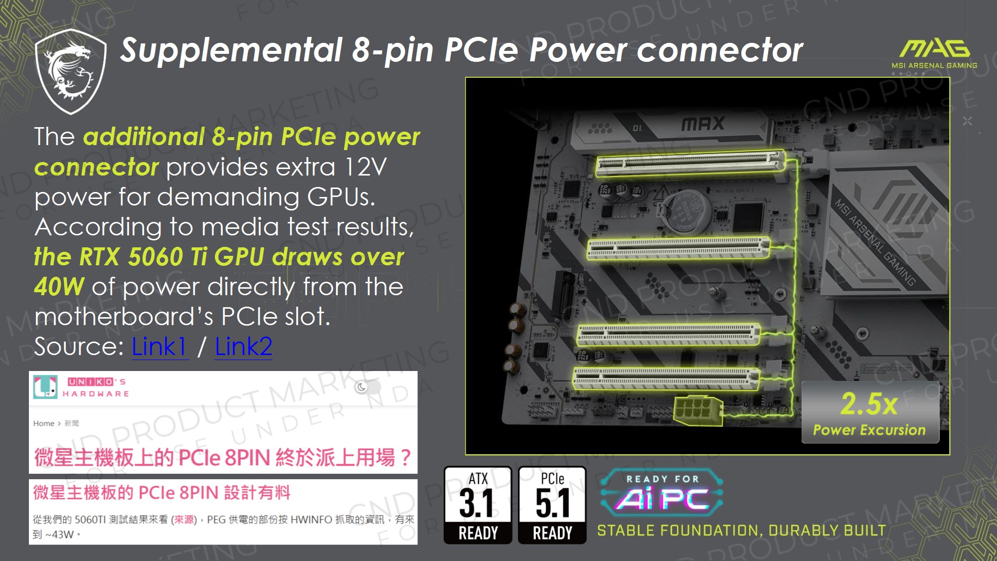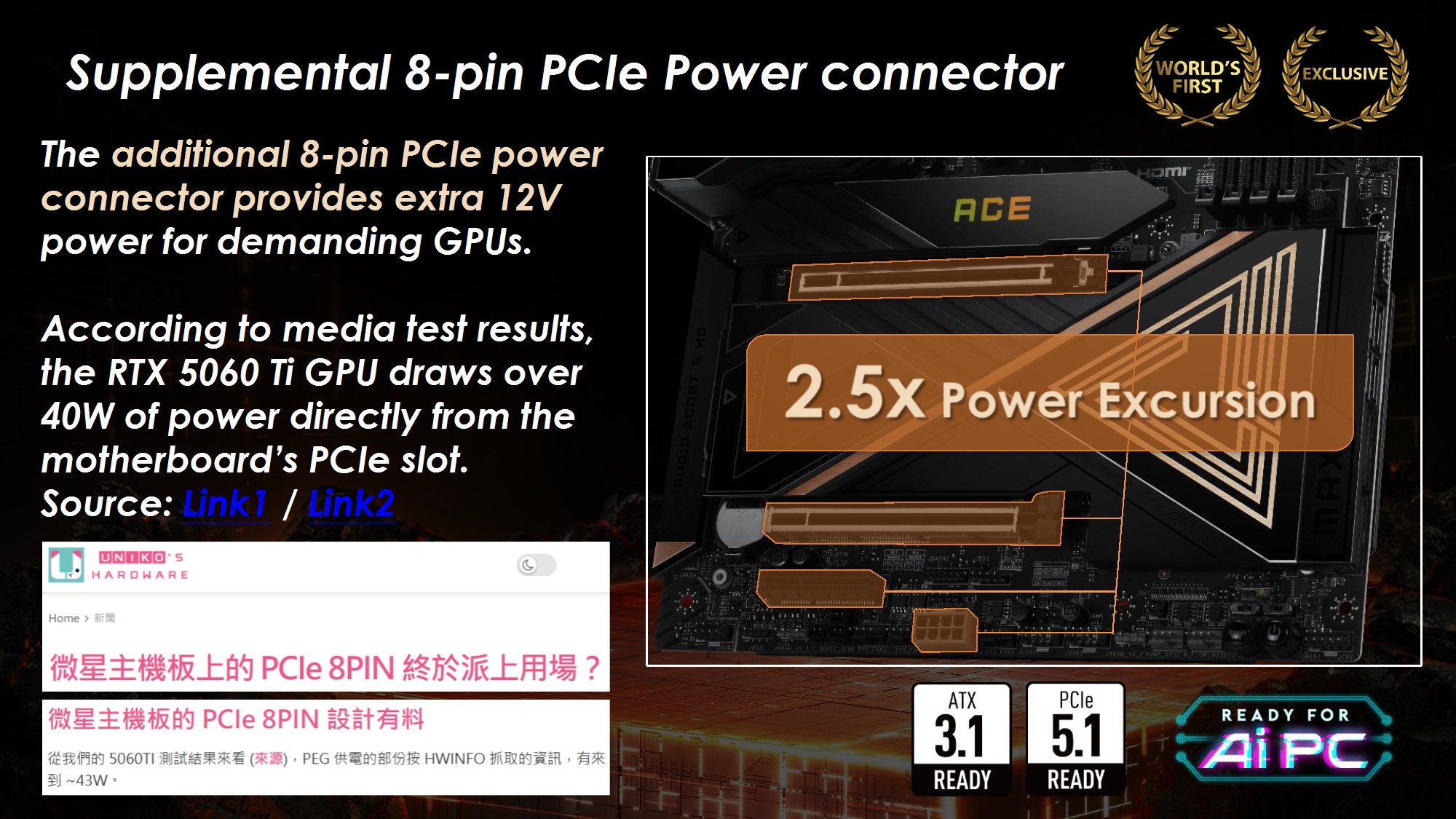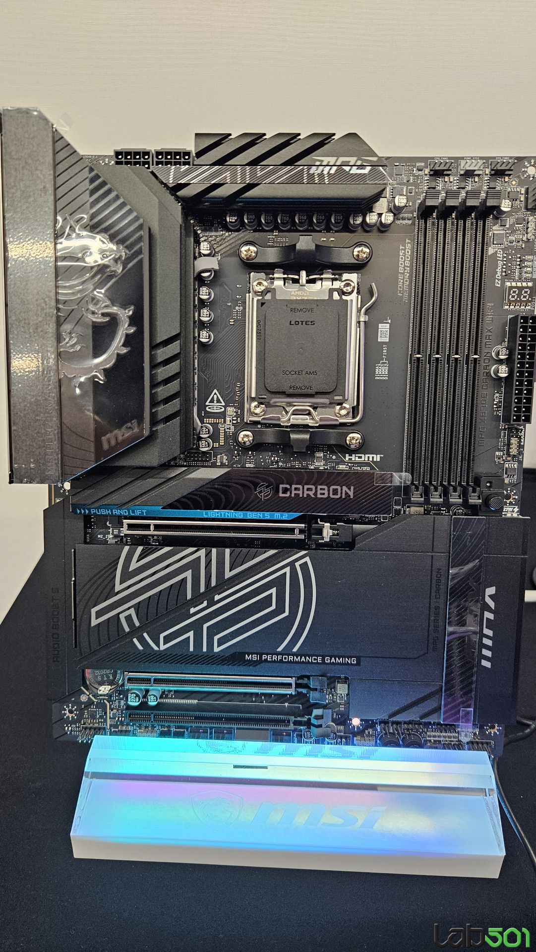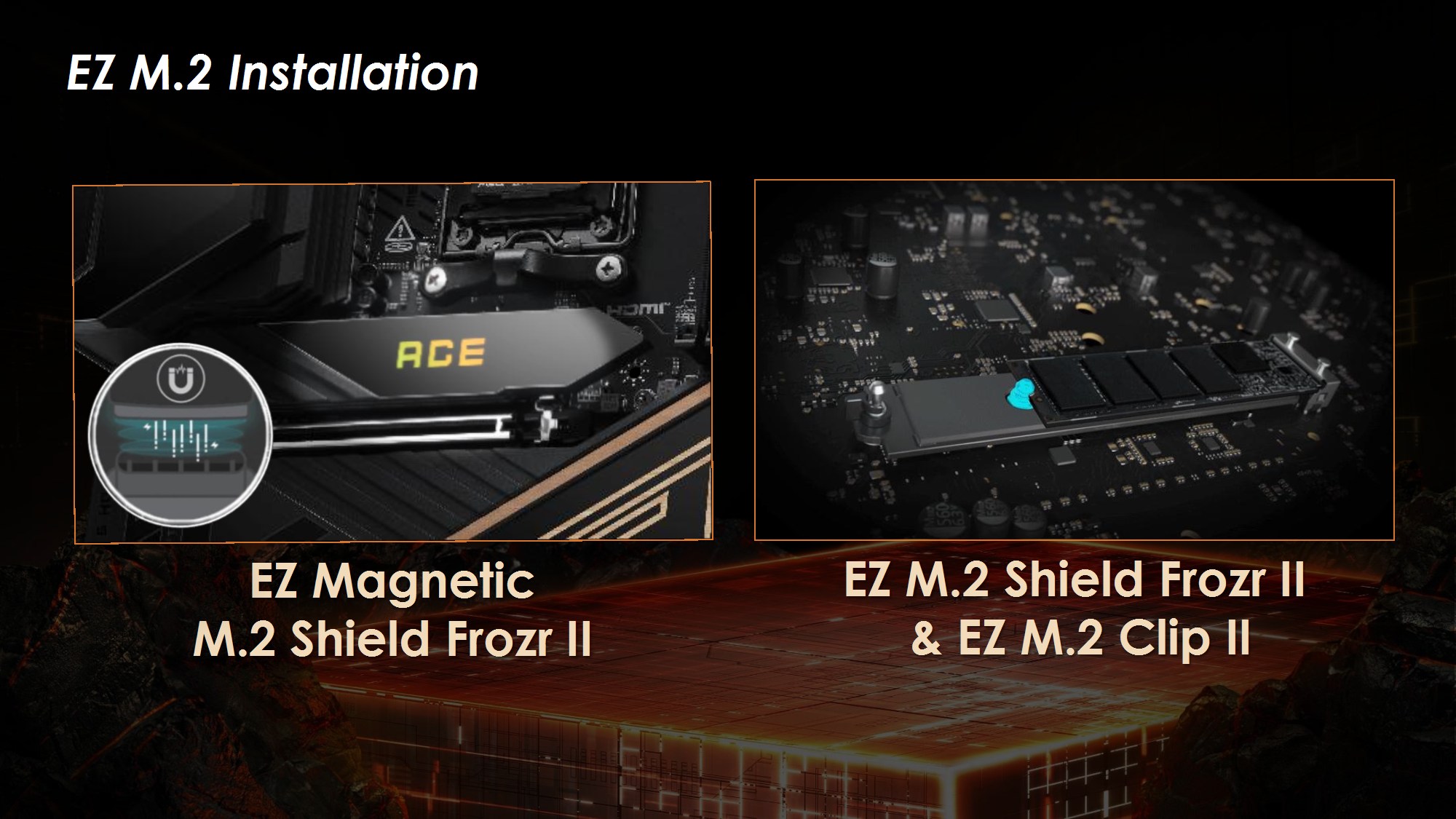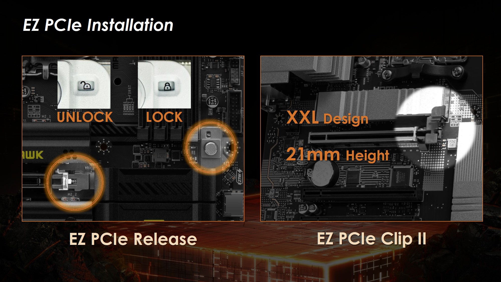 Toate modelele folosesc 2oz PCB, in 10 straturi pentru Godlike, 6 straturi pentru Gaming, respectiv 8 straturi pentru celelalte modele din serie. Noutatile constau in functia OC Engine imbunatatita cu control independent pentru BCLK, Direct OC Jumper, suportul pentru frecvente DDR5 10000, functiile EZ DIY prezente pe toate placile, utilizarea unor chip-uri de BIOS de 64MB, conectivitatea PCI-E 5.0 separata pentru placa grafica si solutii de stocare, precum si prezenta conectivitatii de ultima generatie.
