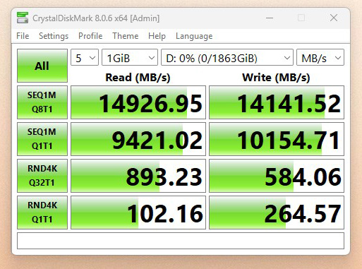 Corsair mentioneaza viteze maxime de pana la 14900 MB/s pentru citire, respectiv 14500 MB/s pentru scriere in cazul modelului de 2TB, insa trebuie subliniat faptul ca producatorul a utilizat o platforma ASUS PRO WS W790E-SAGE SE, impreuna cu un procesor Intel Xeon W9-3495X pentru testele in Crystal Disk Mark, Gigabyte Z790 AORUS MASTER cu un procesor Intel Core i9-13900K pentru majoritatea testelor, respectiv ROG CROSSHAIR X670E HERO cu un procesor AMD Ryzen9 7950X, pentru a testa numarul de operatii pe secunda.