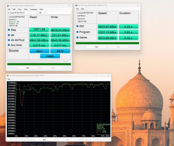 Chiar si asa, Corsair MP700 Pro XT 2TB este unul dintre cele mai rapide SSD-uri testate de noi vreodata, oferind o viteza secventiala de citire superioara celorlalte modele testate de noi, in timp ce in restul testelor lupta se da la egal la egal, fie cu implementarea Kingston, fie cu implementarea Samsung.