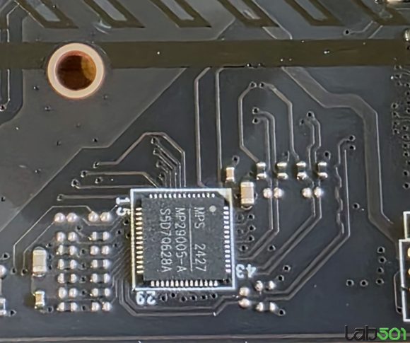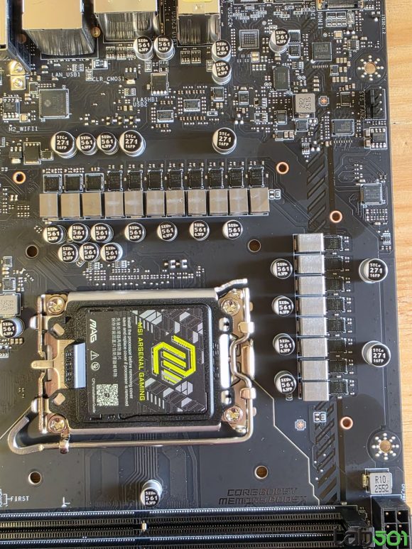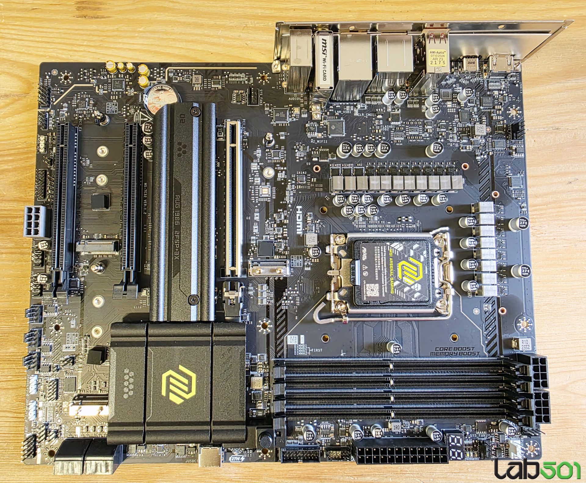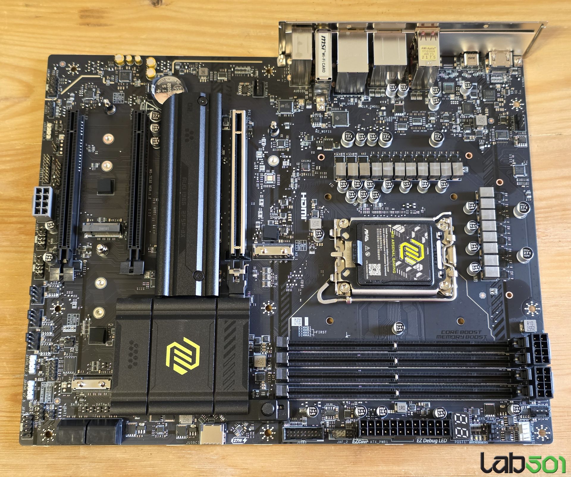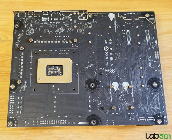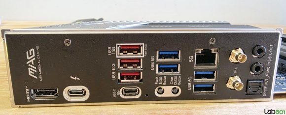 Back-panel-ul adaposteste 4 conectori USB 3.2 Gen 1 (5G), 3 conectori USB 3.2 Gen 2 (10G), 1 conector USB 3.2 Gen 2 Type-C (10G), 1 conector USB-C 40G (USB4/Thunderbolt4), 1 conector RJ-45, 1 conector HDMI, conectorii antenelor, un buton BIOS Flash, un buton Clr_CMOS, precum si conectica audio uzuala. Placa de baza foloseste un PCB in 6 straturi, iar etajul de alimentare al procesorului este alcatuit din 16+1+1+1 faze, alcatuite din mosfeti de 90A.