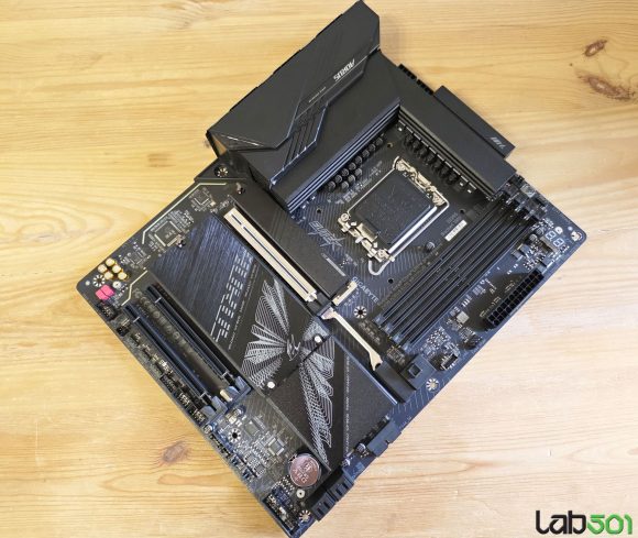 Ei bine, GIGABYTE au ales sa adreseze aceste probleme renuntand la conectivitatea Thunderbolt 4 si la conectorul Sensor Panel Link, folosind de asemenea mosfeti de capacitate mai mica (dar in continuare arhisuficienta) in etajul de alimentare al procesorului. Pe de alta parte, am primit si o serie consistenta de imbunatatiri, de la solutia WiFi 7 cu latime de banda ridicata, sau conectivitatea 5Gbe LAN si pana la etajul de alimentare al memoriilor sau chip-ul de BIOS de capacitate dubla.