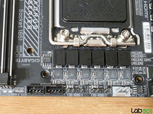 Placa de baza foloseste un etaj de alimentare digital, acesta fiind alcatuit din 8 faze pentru vCore alcatuite din mosfeti de 105A, 2 faze de 80A pentru VCCSA si 1 faza VCCGT de 40A. Nu in ultimul rand, memoriile folosesc slot-uri de tip UD Slot D5, ranforsate metalic, respectiv un slot PCI-E UD Slot X, cu camasa metalica prinsa de PCB in 4 suruburi.