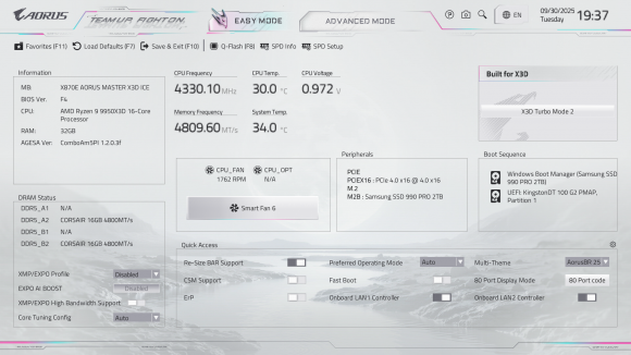 Review – X870E AORUS Master X3D ICE – Performanta in plus pentru AMD Ryzen 9 9950X3D