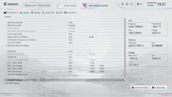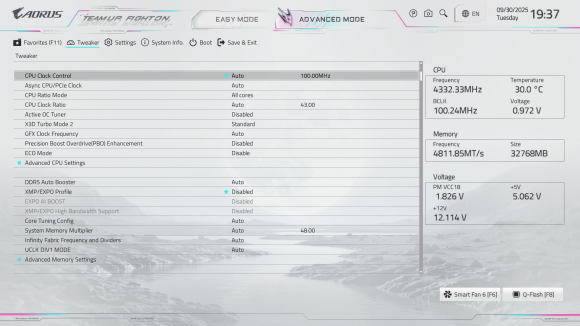 Pe langa X3D Turbo Mode 2.0, BIOS-ul ofera toate optiunile de tweaking avansate disponibile pe platforma AMD: PBO, Curve Optimizer, setari detaliate de timing DDR5 si suport complet pentru profile EXPO – toate prezentate intr-o interfata moderna si usor de utilizat.