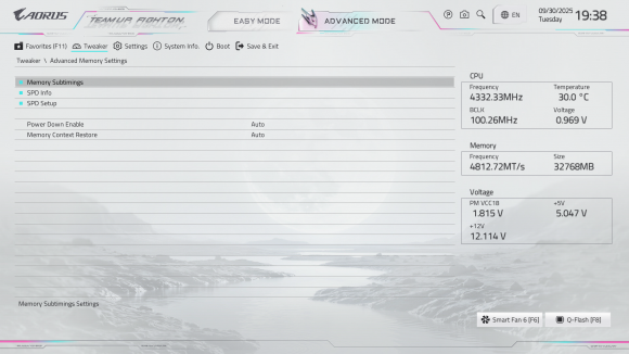 Punctul central al acestui BIOS este insa X3D Turbo Mode 2.0, disponibil in trei moduri de functionare: Standard (folosind algoritmul implicit de Core Parking AMD), Max Performance si Extreme Gaming. Pentru cei care prefera sa evite configurarea directa in BIOS, GIGABYTE ofera si o solutie software dedicata: aplicatia GIGABYTE OnFly X3D, care permite comutarea cu un singur clic intre cele trei profile X3D Turbo direct din Windows, necesitand doar un restart pentru aplicarea modificarilor.