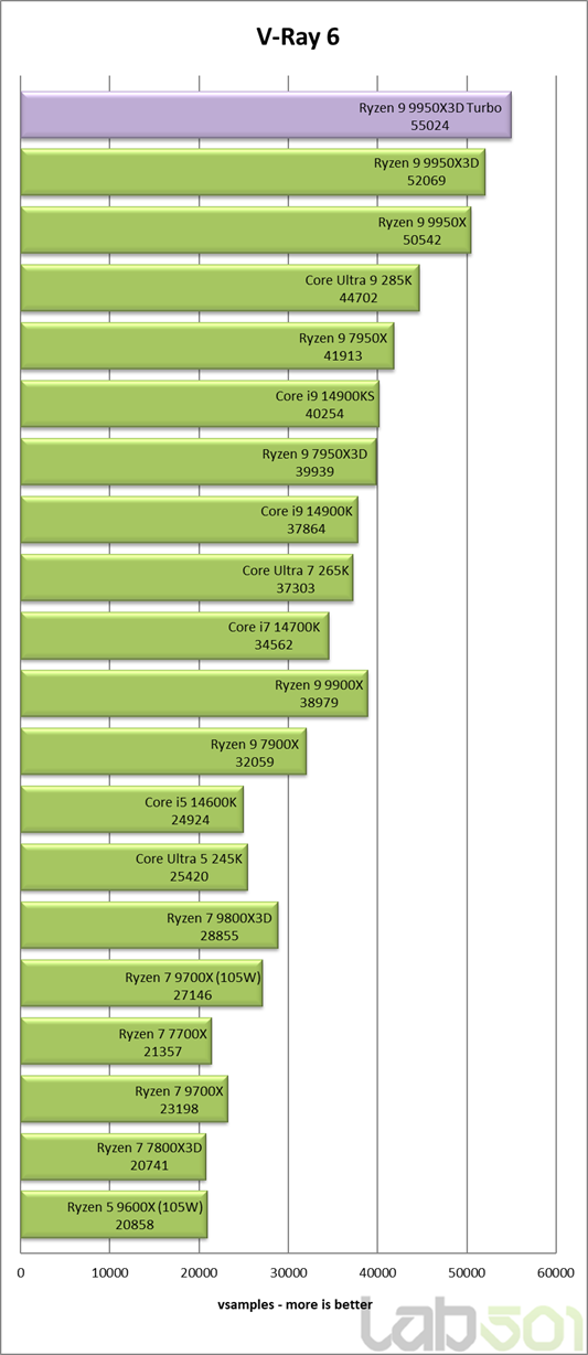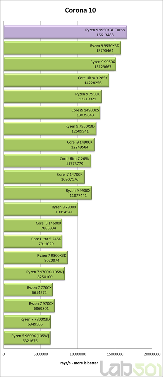 AMD Ryzen 9 9950X3D ruland pe profilul Max Performance capata un avans de 5-6% comparativ cu acelasi procesor ruland in modul Standard.
