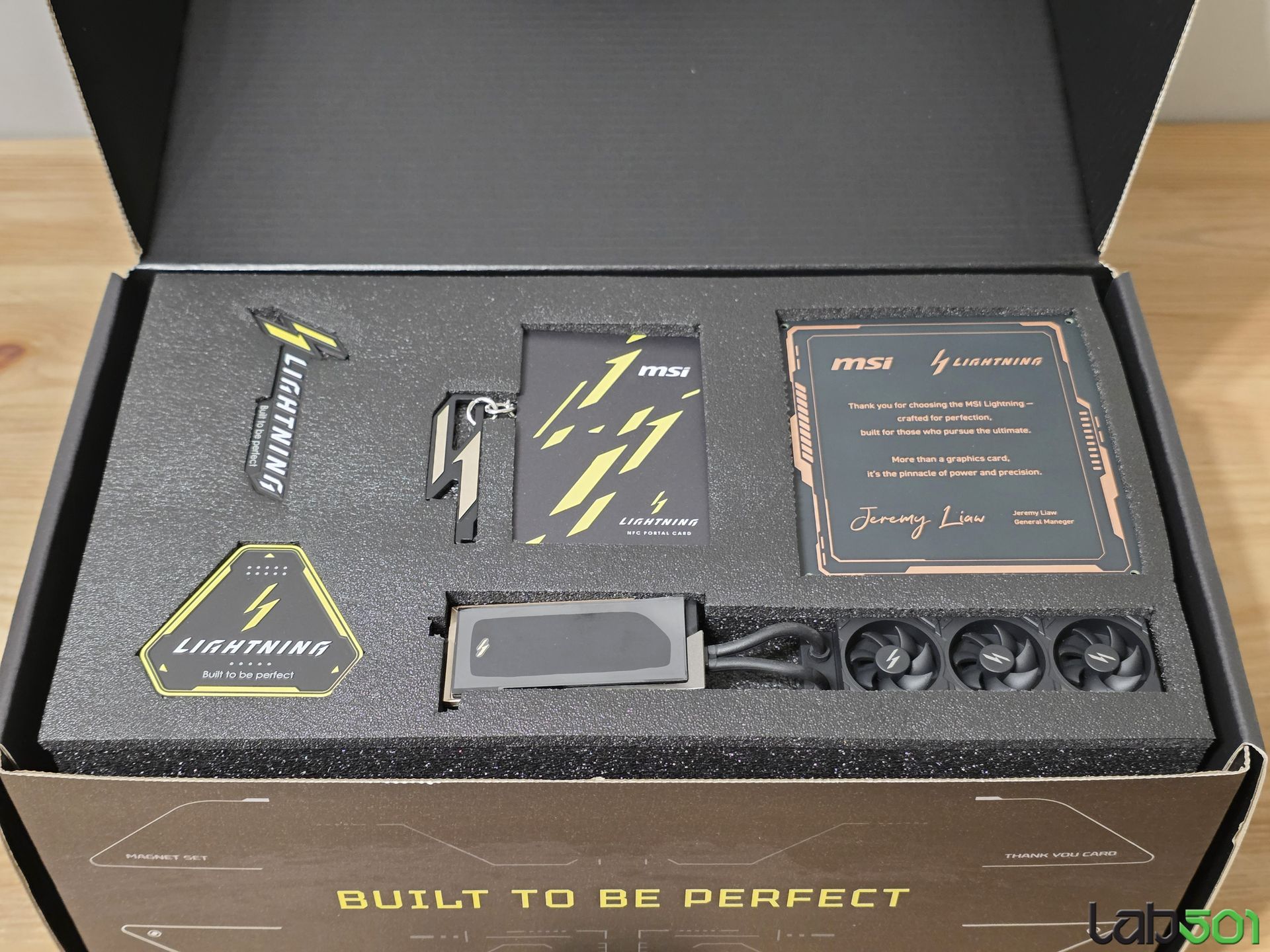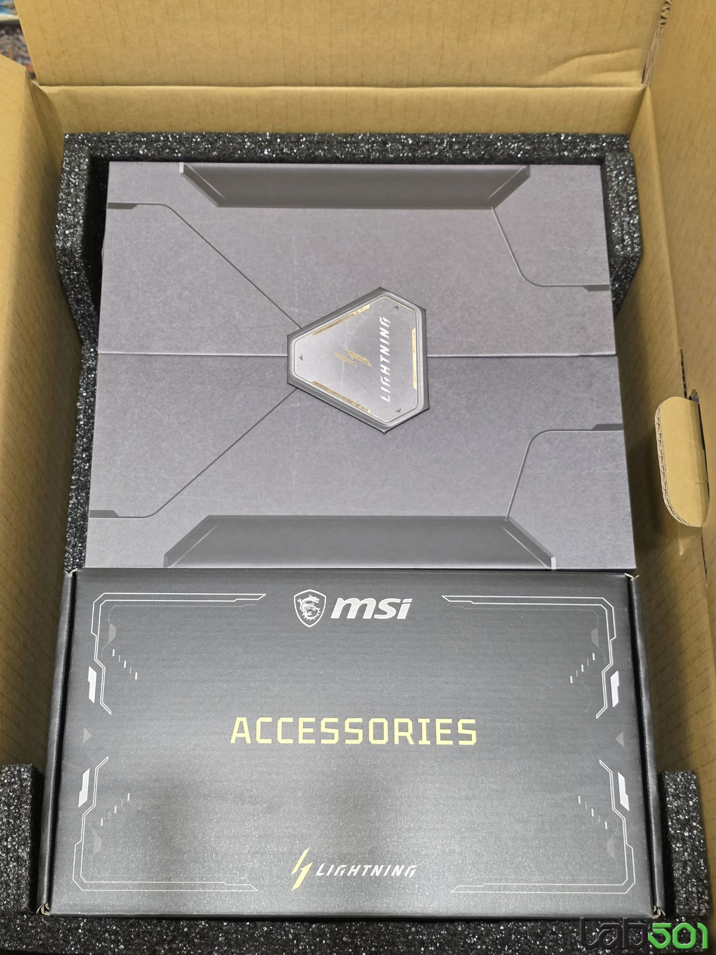 Fiind vorba despre cea mai speciala implementare de RTX 5090 produsa vreodata, ambalajul este de asemenea pe masura, MSI GeForce RTX 5090 32G LIGHTNING Z fiind livrata intr-o cutie uriasa, care contine la randul sau 3 cutii.