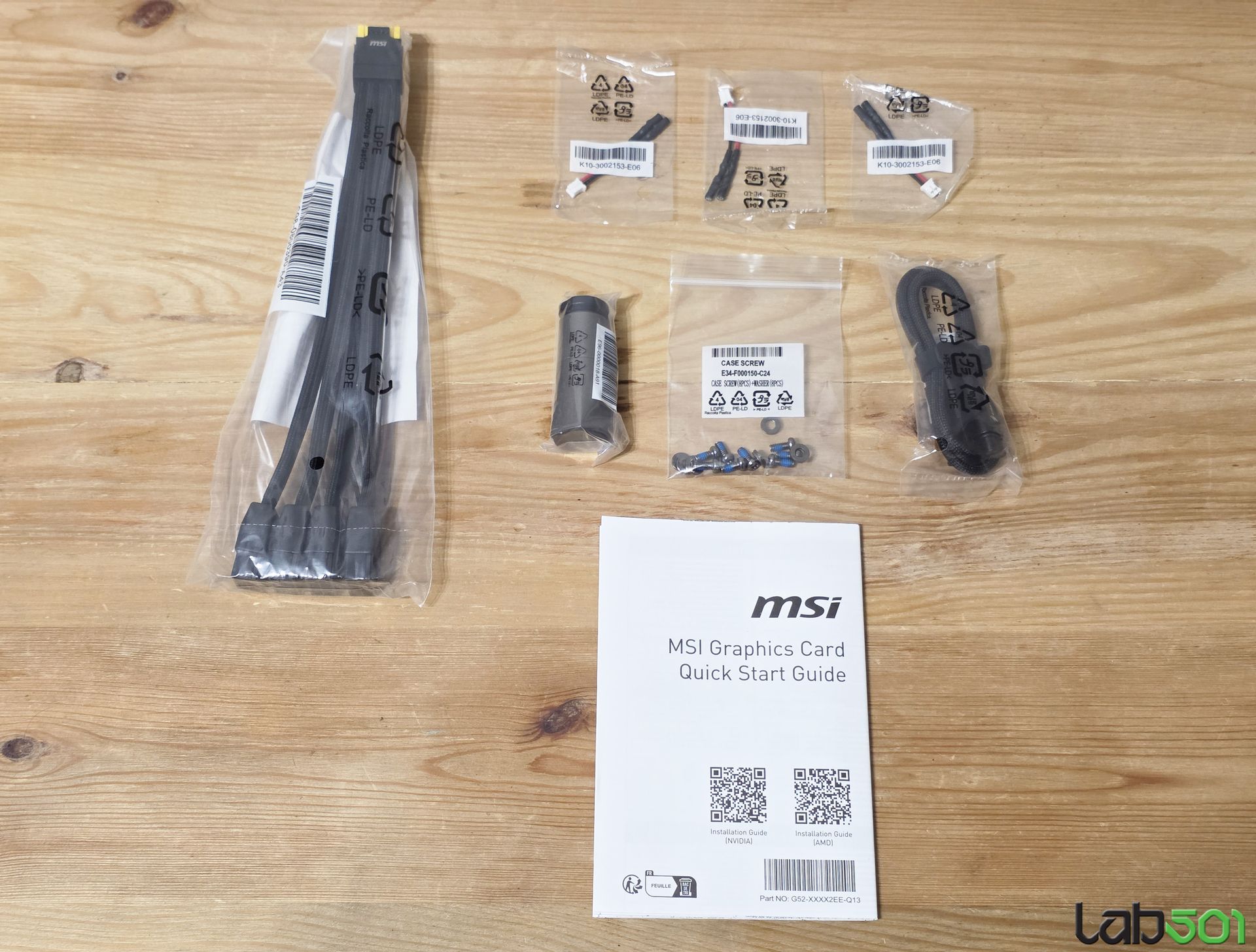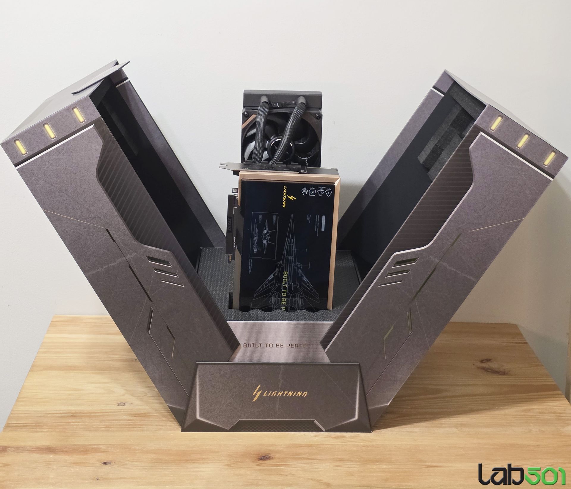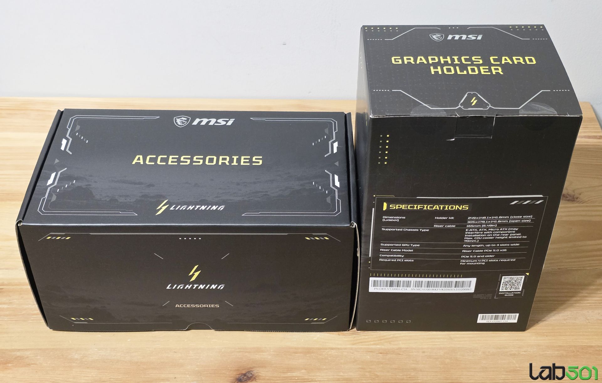 Astfel, intr-una dintre cutii gasim placa grafica efectiva, a doua cutie este plina cu accesorii, de la brelocuri si magneti pentru colectionari si pana la cablul 12V-2×6 cu 4 conectori PCI-E cu 8 pin, cablul USB-C pentru Lightning Display, respectiv anse pentru masurarea celor mai importante tensiuni.