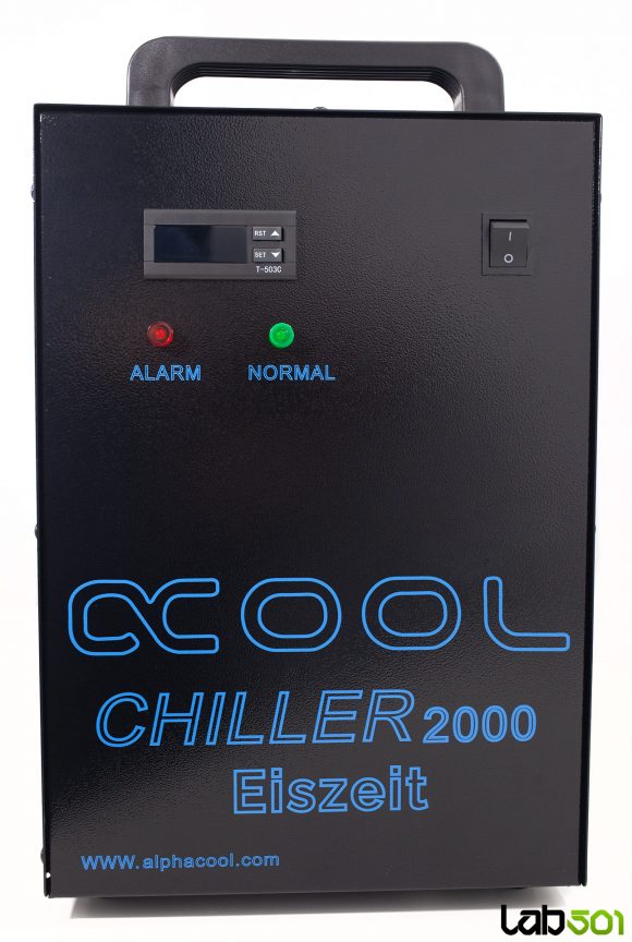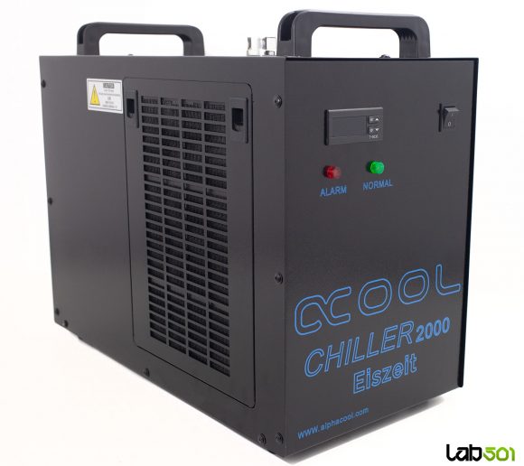 Cand ne-am apucat de acest proiect aveam deja pe drum un chiller de la Alphacool, mai exact modelul lor de top, Eiszeit 2000. Scopul principal al unui chiller este racirea eficienta a unor configuratii complexe, echipate cu mai multe waterblock-uri, fara a fi nevoie de un numar mare de radiatoare si ventilatoare. De asemenea, poate fi utilizat pentru racirea serverelor sau, evident, pentru overclocking la temperaturi apropiate de 0°C. In acelasi timp – de altfel, motivul pentru care am ales sa dotam laboratorul cu un astfel de echipament – chiller-ul este un instrument excelent pentru teste comparative de waterblock-uri, permitand mentinerea unei temperaturi constante a lichidului pentru rezultate cat mai exacte.