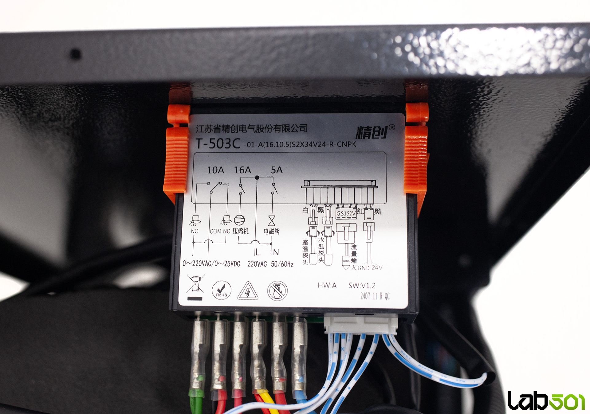 Desi Alphacool specifica o temperatura minima standard de 20°C, noua revizie a termostatului T-503C permite setarea temperaturii pana la -20°C, eliminand necesitatea unor modificari, asa cum era cazul modelelor mai vechi. Alarma de temperatura minima poate fi setata pana la 1°C, iar atunci cand este declansata poate fi ignorata prin actionarea butoanelor termostatului.