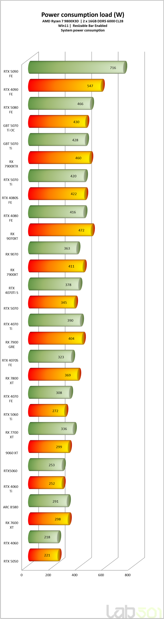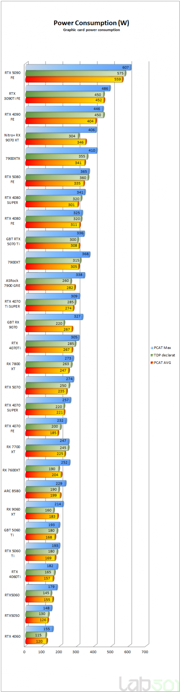 Aparatul pentru masura consumului la priza indica un maxim de 291W trasi din priza, iar PCAT-ul ne indica un consum maxim de 229W si o medie de 199W. Practic, avem de-a face cu un consum mediu cu 42W mai ridicat fata de RTX 4060 Ti.