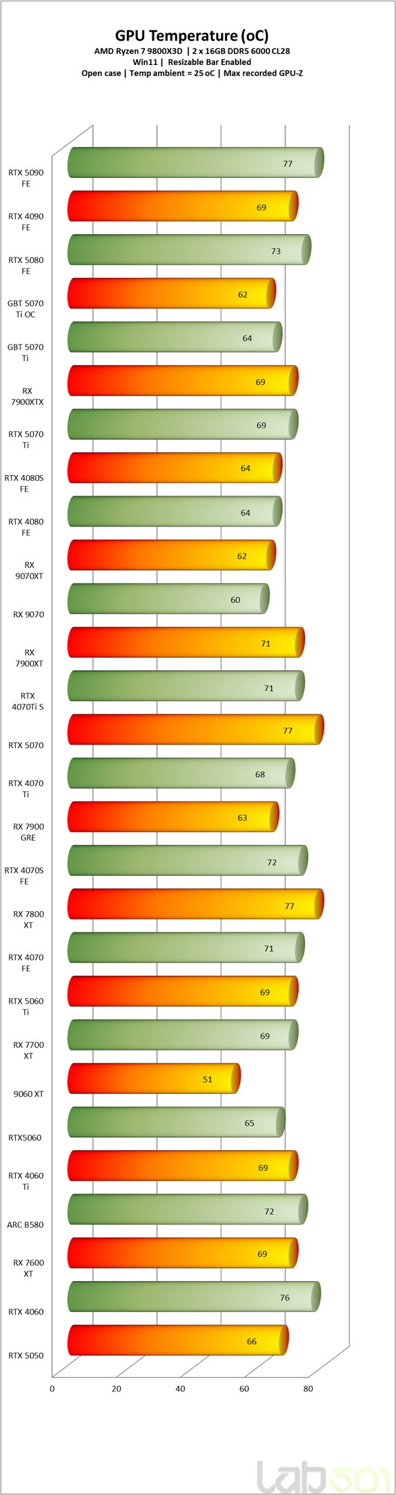 Sistemul de racire compact este performant si eficient, nucleul grafic atingand un maxim de 72 oC, in conditiile mentinerii unui nivel de zgomot destul de scazut (36.9 dB).