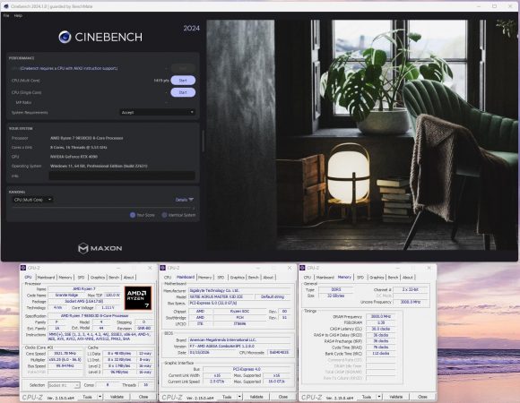 Totusi, o frecventa fixa va genera aproape intotdeauna scoruri ceva mai slabe decat un algoritm automat precum PBO, unde procesorul poate urca semnificativ mai sus atunci cand sunt utilizate mai putine thread-uri. Dovada este si scorul obtinut in Cinebench 2024, care a fost mai mic decat cel din scenariul precedent.