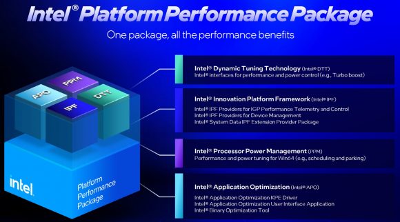 Odata cu seria Intel Core Ultra 200S Plus, Intel au introdus Intel Platform Performance Package (IPPP), un pachet software unificat care are rolul de a controla in mod centralizat toate mecanismele critice pentru performanta procesorului. Spre deosebire de generatiile anterioare, unde functionarea optima depindea de o combinatie de drivere si servicii care trebuiau instalate separat, IPPP consolideaza aceste componente intr-un singur pachet coerent, similar cu abordarea AMD in cazul pachetului de drivere pentru chipset.
