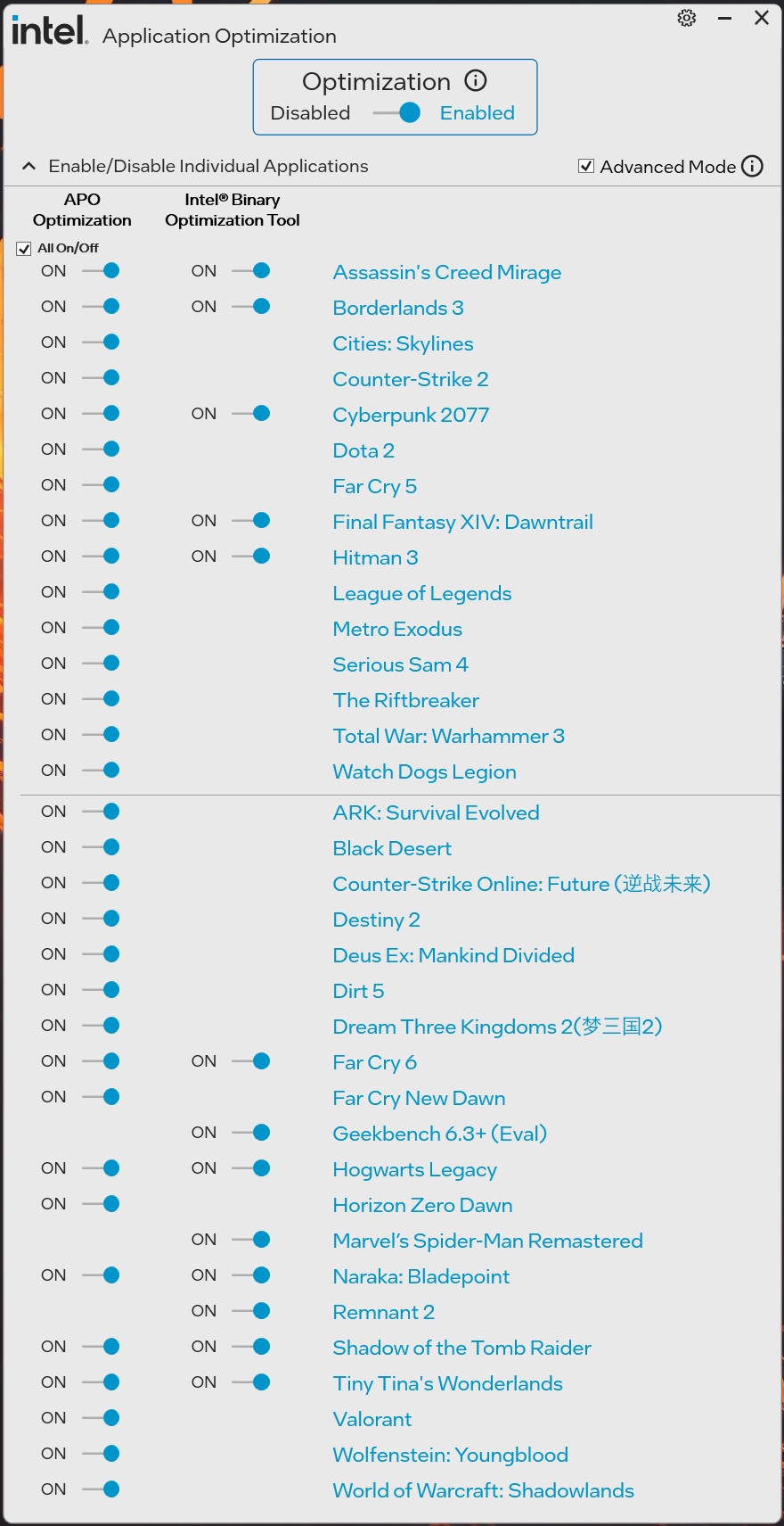 Este important de mentionat ca Binary Optimization Tool este o functionalitate optionala, care vine initial dezactivata, insa poate fi activata din interfata Intel APO (Application Optimization), Intel preferand o introducere controlata, cu feedback din partea comunitatii si a reviewerilor. Avand in vedere modul de functionare, precum si similitudinile cu AMD Application Compatibility Database, care este instalat si activat din start la instalarea driverelor de chipset si provisioning pe platformele AMD Ryzen, am decis activarea Intel Binary Optimization Tool pentru testele noastre de astazi, aceasta fiind abordarea corecta in opinia noastra.
