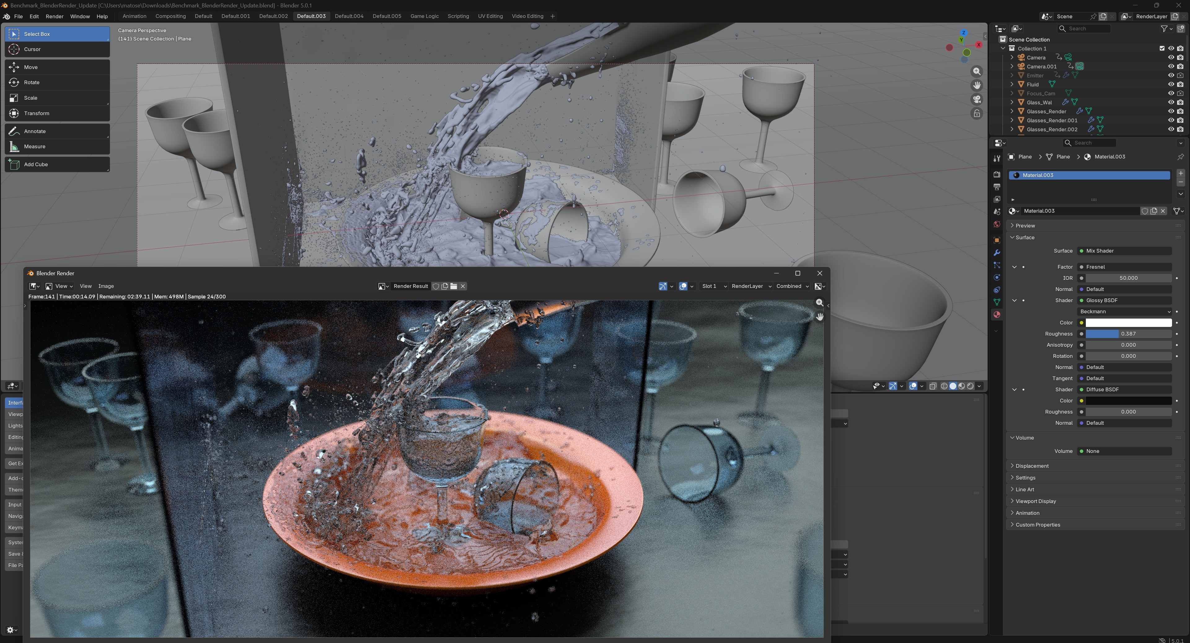 Colegul nostru Amok a fost foarte harnic si a creat o scena de test si pentru Blender. Blender, software-ul creat si dezvoltat de Blender Foundation, este un software 3D complet, open-source, gratuit, ajuns la versiunea 5.0.1.