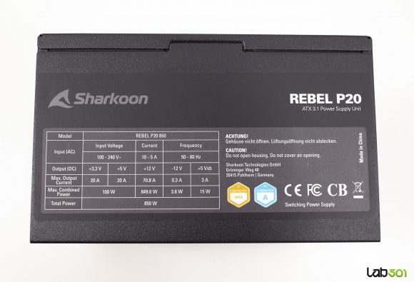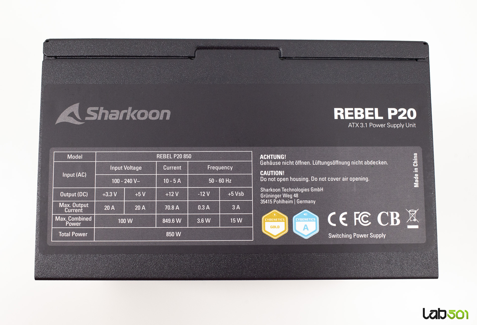 Sursa este complet modulara, ceea ce inseamna ca pot fi utilizate doar cablurile strict necesare, un avantaj important pentru un cable management curat, mai ales intr-un build de tip Stealth. In ceea ce priveste eficienta, Rebel P20 850W este certificata Cybenetics Gold, atingand o eficienta medie de aproximativ 91% la 230 V. In plus, Sharkoon a echipat sursa cu un ventilator de 120 mm silentios, prevazut cu mod Zero RPM, care permite oprirea completa a ventilatorului la sarcini reduse si medii, rezultand o functionare practic inaudibila in utilizarea zilnica.