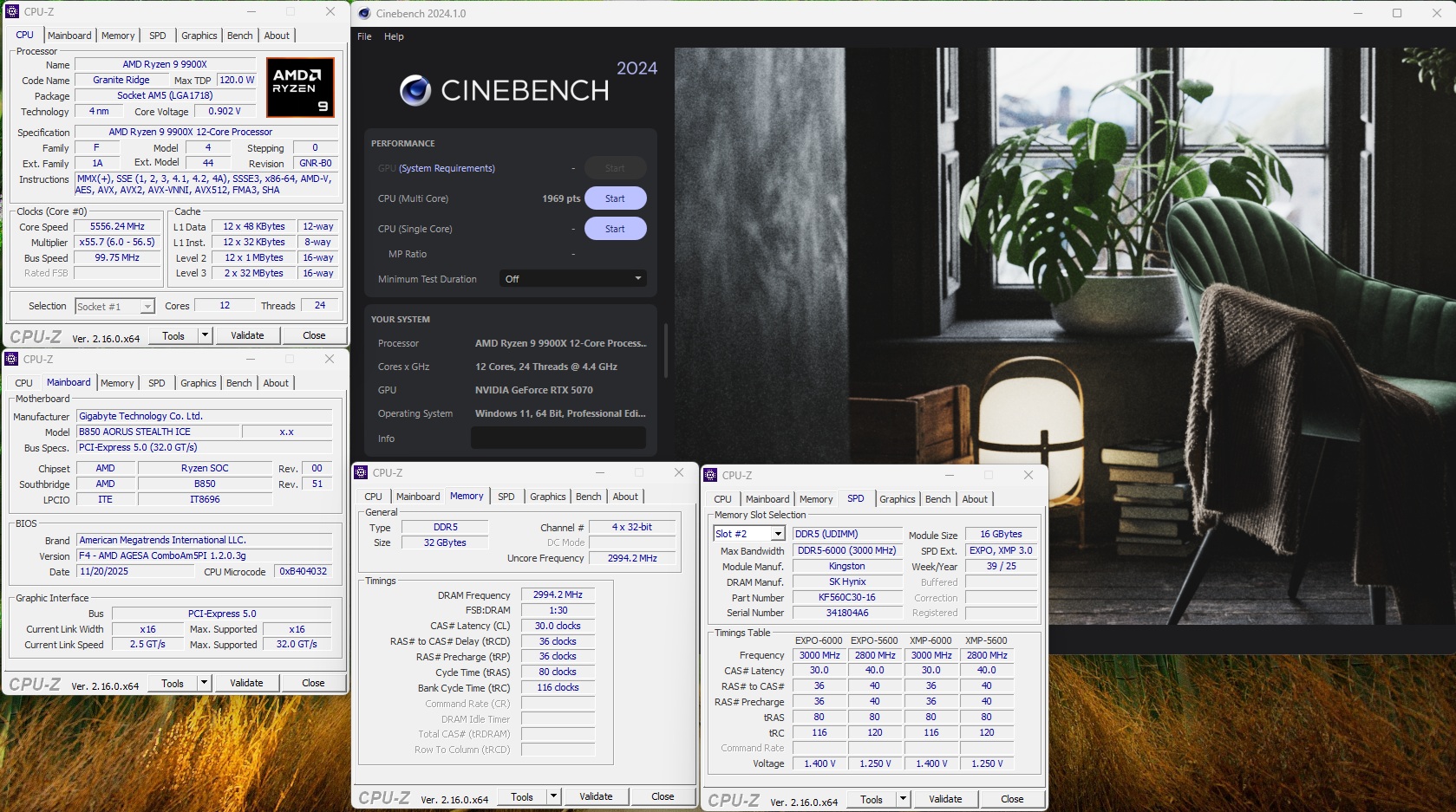 Cum procesorul a fost deja testat pe site, in acest articol am rulat doar Cinebench 2024, pentru a verifica functionarea corecta a sistemului si pentru a compara rezultatele cu cele obtinute anterior. Pentru optimizarea performantei, am activat PBO (Precision Boost Overdrive), impreuna cu o usoara reducere a tensiunii de alimentare prin Curve Optimizer (CO), setat la -20 pe ambele CCD-uri.