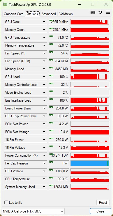 Asa cum am observat si in testele anterioare, placa video nu a depasit 72°C, ceea ce indica faptul ca sistemul este foarte bine echilibrat din punct de vedere termic, cu un airflow eficient si fara acumulare excesiva de caldura in carcasa.