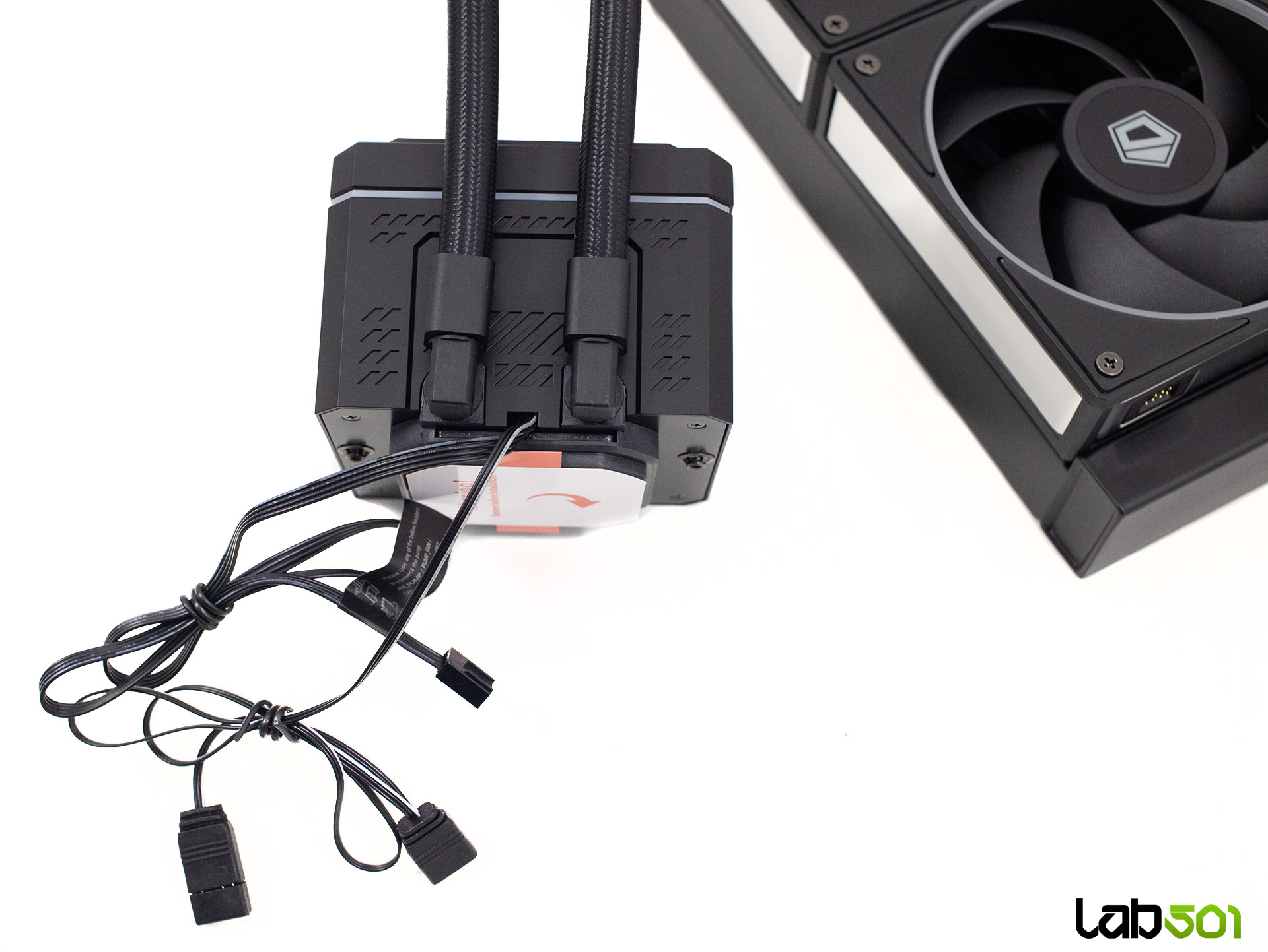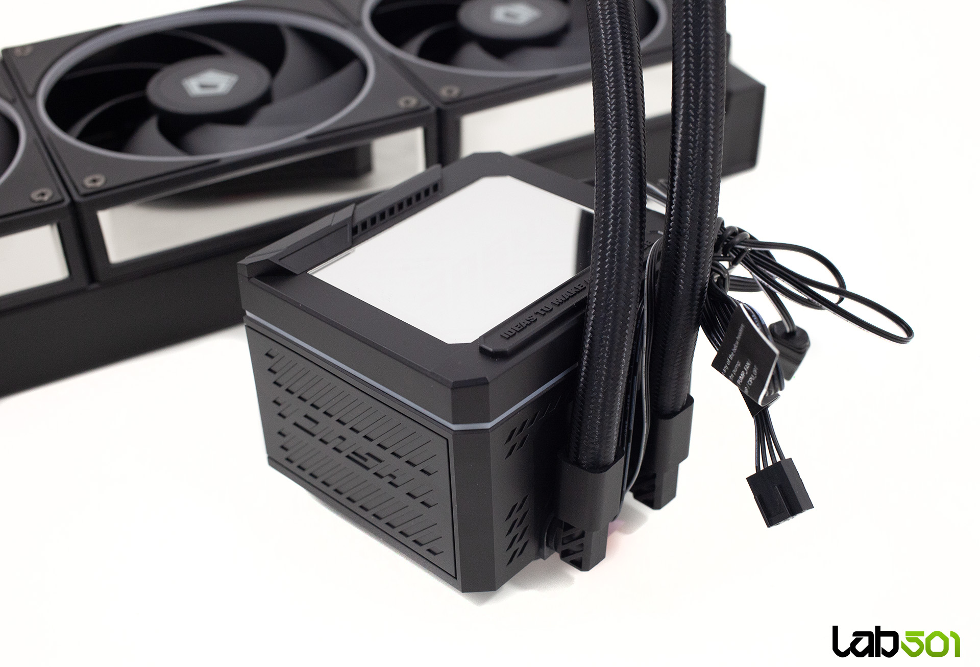 Radiatorul folosit de ID-Cooling DL360 MAX iese in evidenta prin dimensiuni si constructie. Cu o grosime de 38 mm si o lungime totala de 400 mm, este vizibil mai masiv decat majoritatea modelelor din aceeasi categorie, care rareori depasesc 27–30 mm. Acest plus de volum se traduce printr-o capacitate superioara de disipare a caldurii si permite AIO-ului sa sustina un TDP maxim de 350 W, conform specificatiilor producatorului.