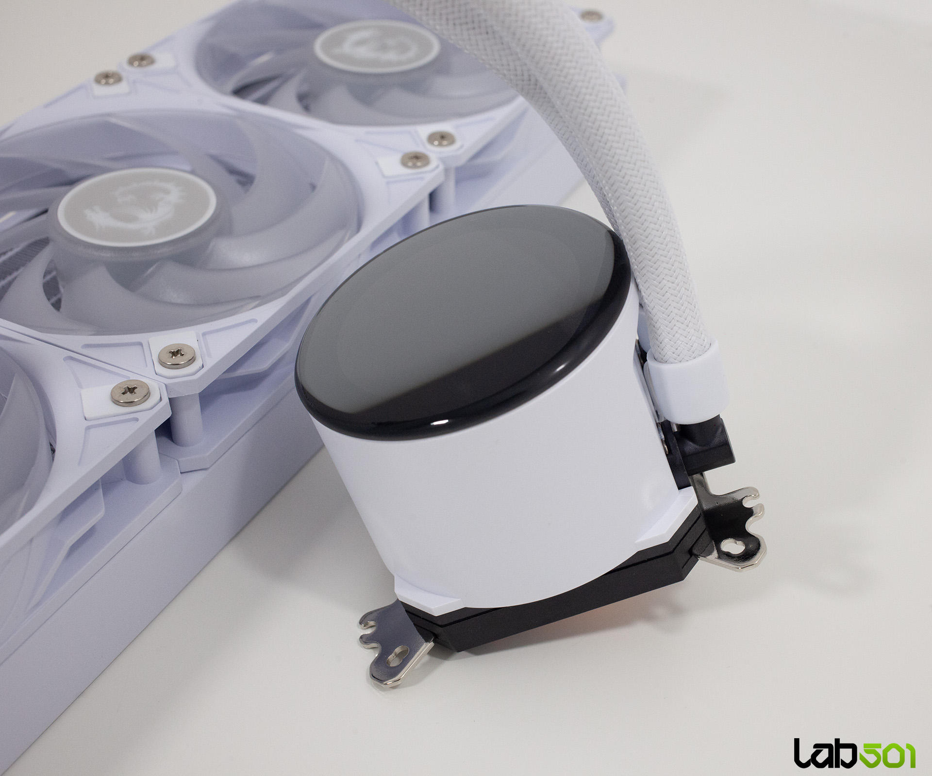 MSI au echipat CoreLiquid P13 360 cu toate „nebuniile” anului 2025: ecran LCD color, iluminare ARGB, cabluri ascunse prin sleeving-ul furtunelor si un design minimalist si functional, profitand si de trecerea la un nou OEM pentru AIO-urile sale. Din fericire, MSI nu au neglijat partea tehnica: P13 360 vine cu un radiator generos de 360 mm, o pompa noua, un coldplate de cupru marit, echipat cu canale de 0.1 mm, plus trei ventilatoare optimizate pentru presiune statica ridicata. Toate acestea sunt ambalate intr-un pachet care se doreste user-friendly – ventilatoare pre-montate, bracket universal si conectica simplificata – astfel incat instalarea sa fie floare la ureche chiar si pentru cei mai nerabdatori sa isi vada jucaria in functiune.